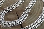 Полновесное плетение.Плтение Кобра является досточно широким плетением. Благодаря своей неугловатой форме с гладкими округлыми краями данное плетение в серебре больше подходит девушкам и женщинам, как в виде браслета так и цепочки. И тем не менее есть возможность установить на браслеты и цепочки разные замки, в том числе более грубые, мужские, с которыми изделия преобретают более мужественный вид, и женскими их назвать будет трудно. Также, если изготовить браслет Кобра из золота даже с обычным замком, то такой браслет будет выглядеть более мужественно, чем в серебре.