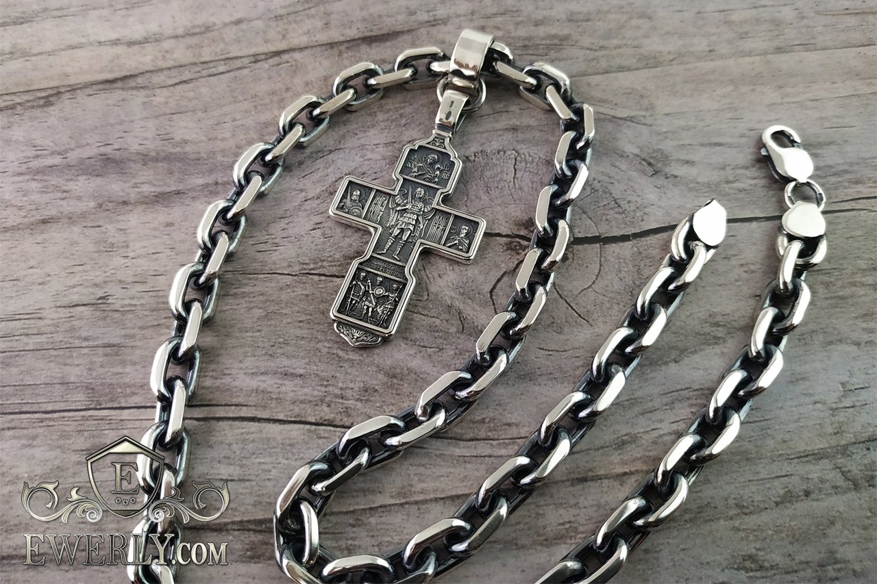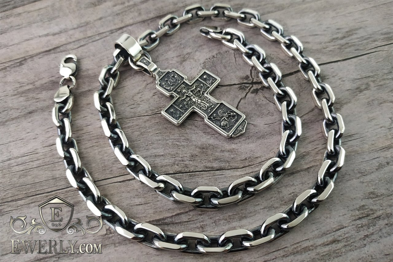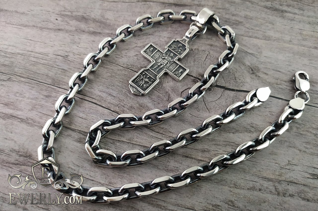 Kit : pendant of silver and chain "Anchor with edges" 151006PR