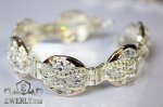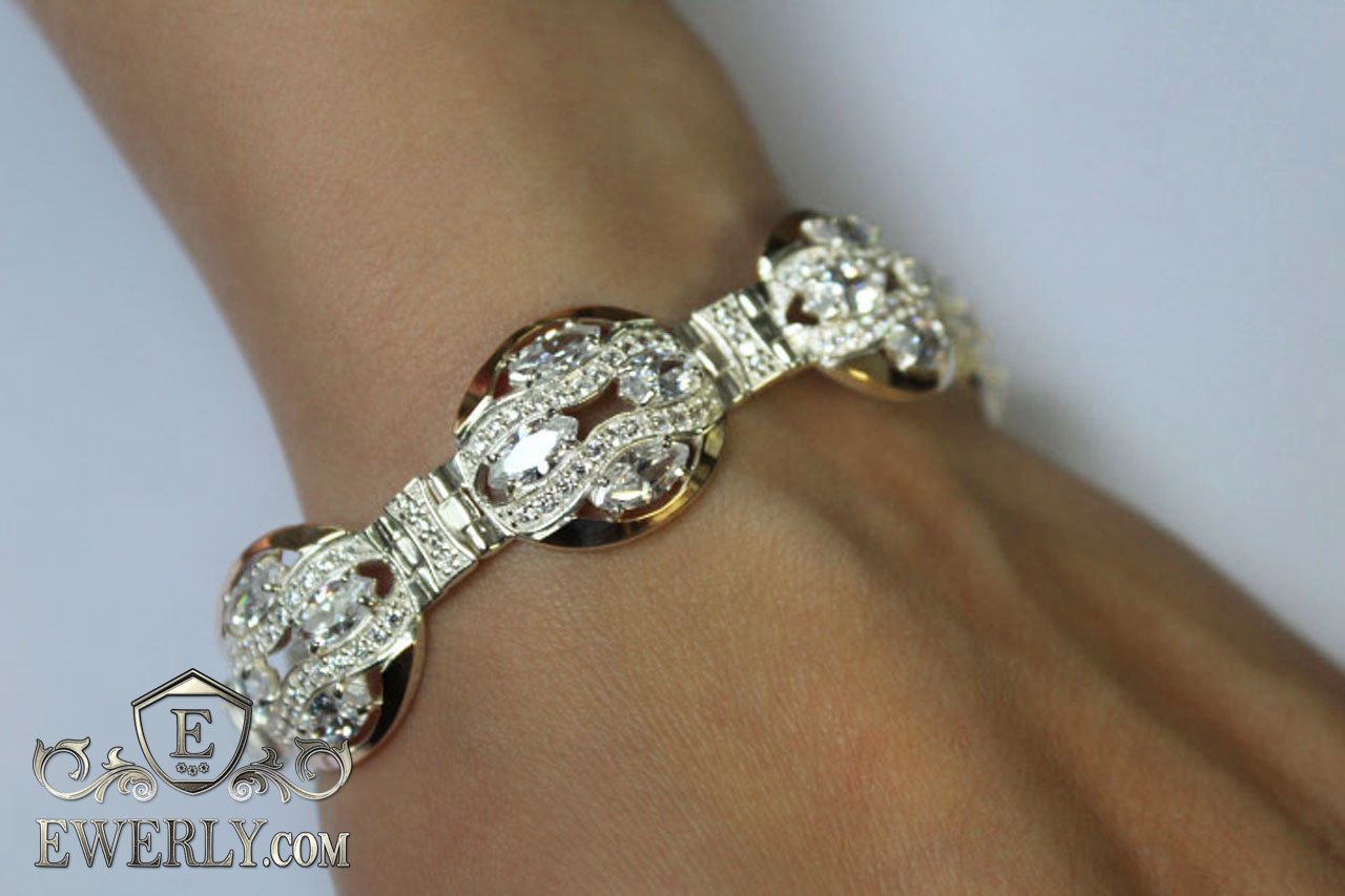 Full-fledged bracelet. Women's silver bracelet with white fianites and gold inserts.