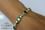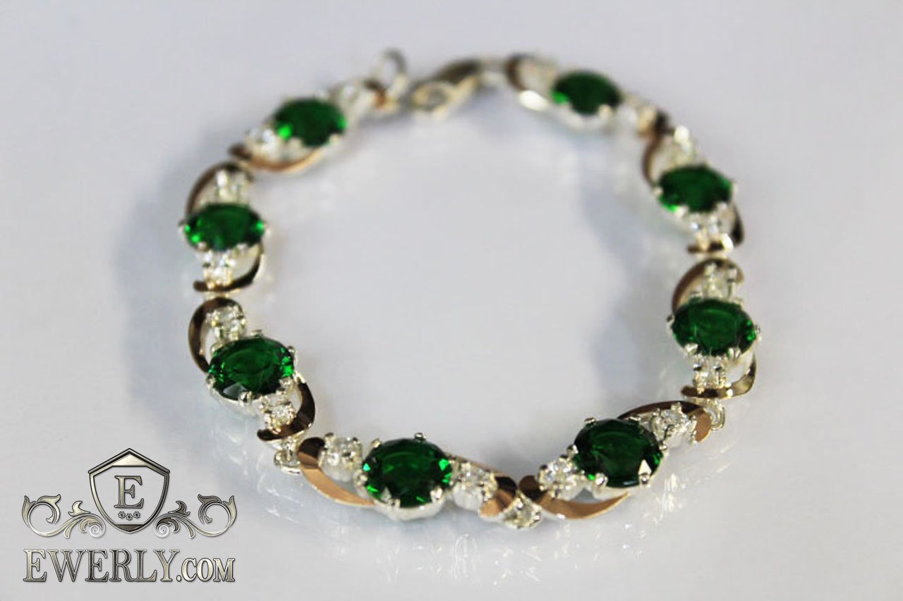 Full-fledged bracelet. Women's bracelet made of silver with green and white fianites and with gold inserts.