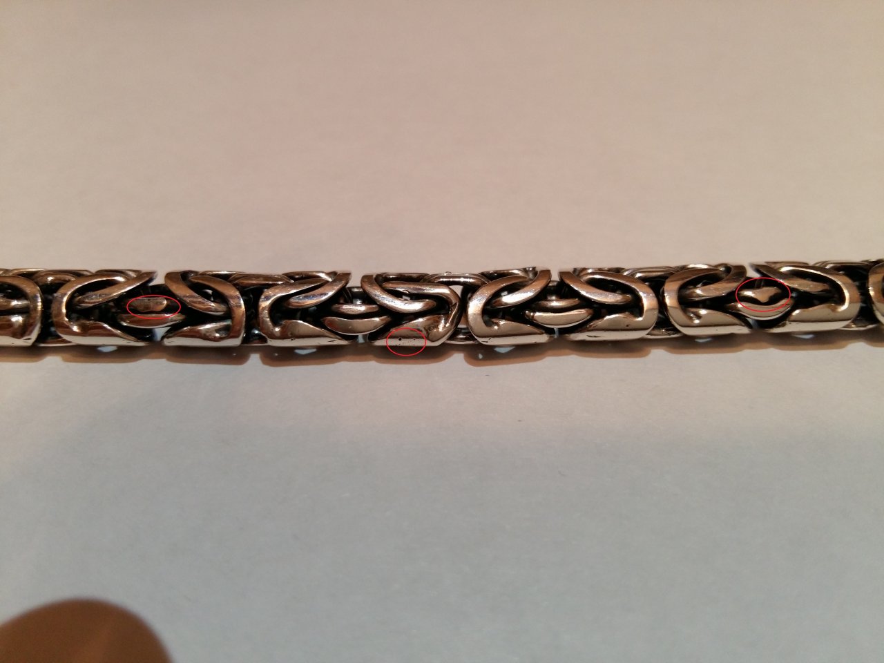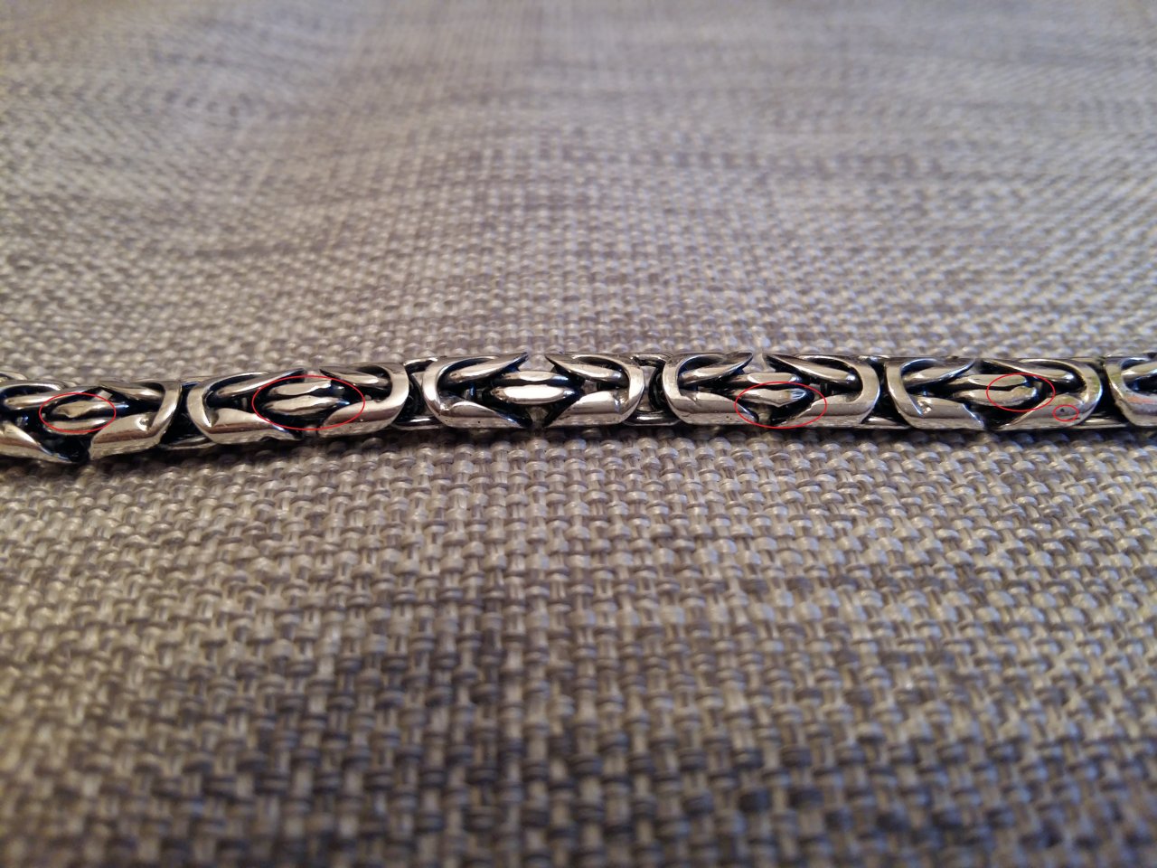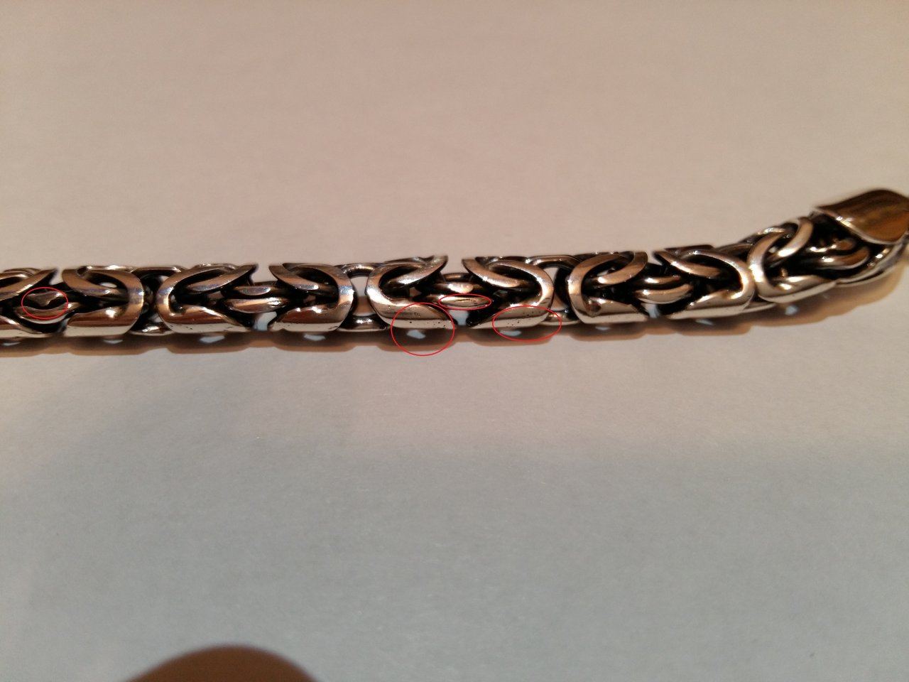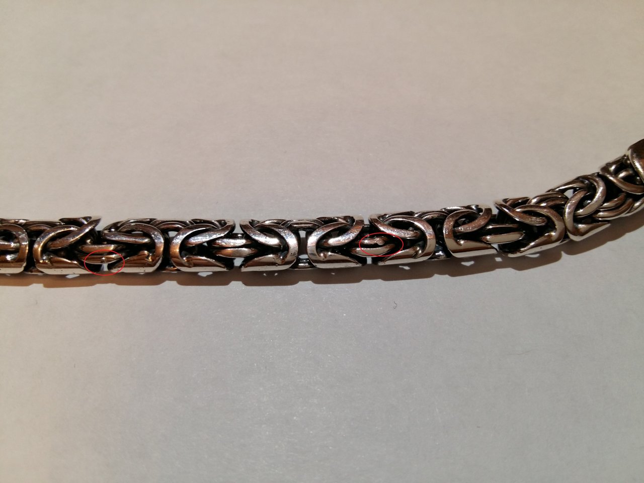 The suitable length of the bracelet depends on its weight and the girth of the wrist. On the right are the weights of the bracelet and the length ranges by which it should be larger than the girth of the wrist. - More than 80 g - by 5.0-6.6 cm