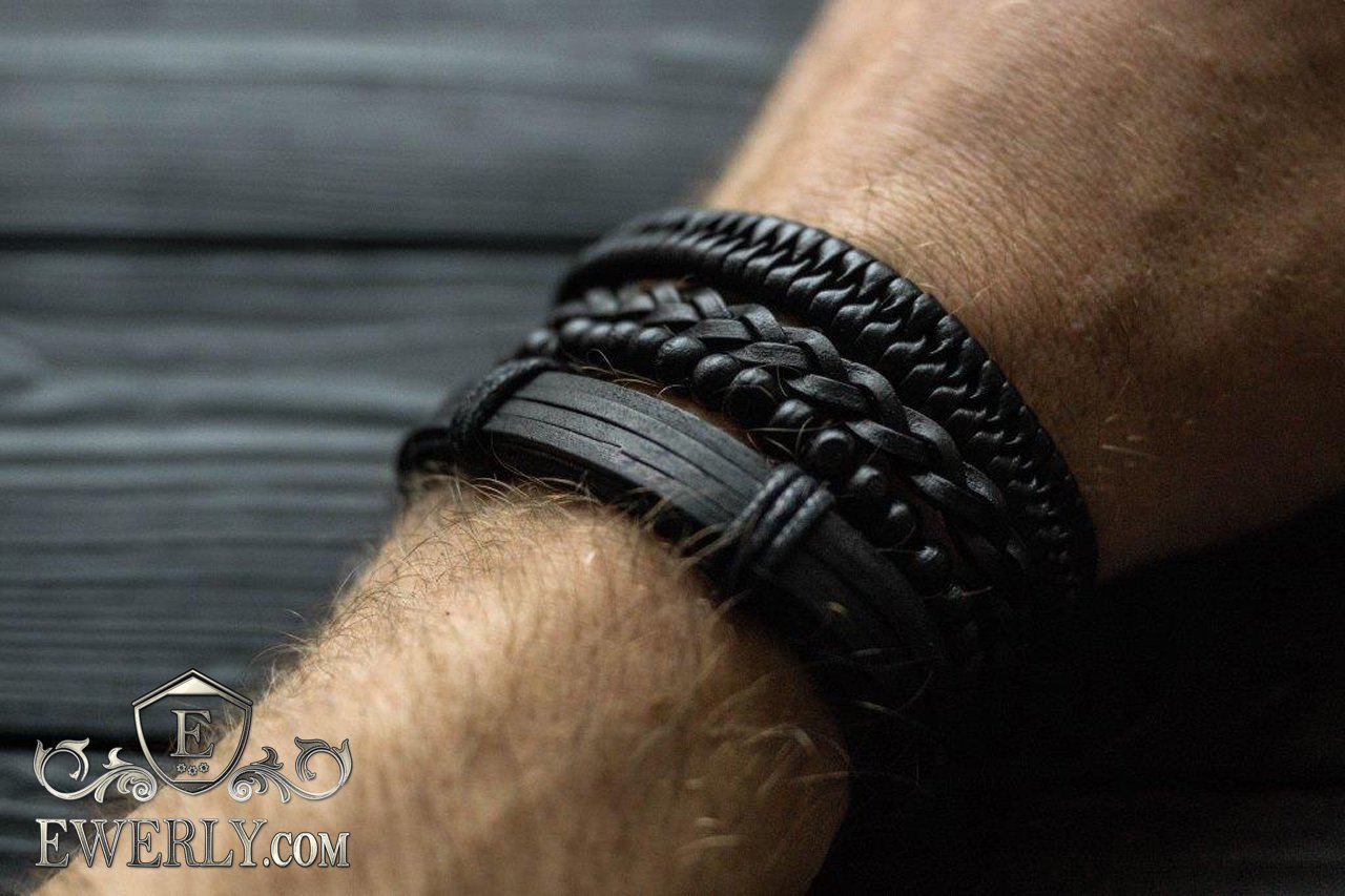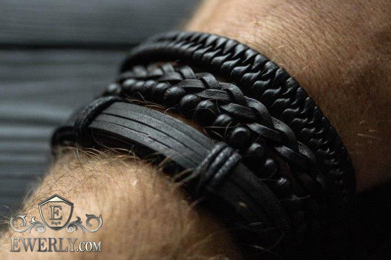 Three leather bracelets with adjustable cord and one stone bracelet.Similar items