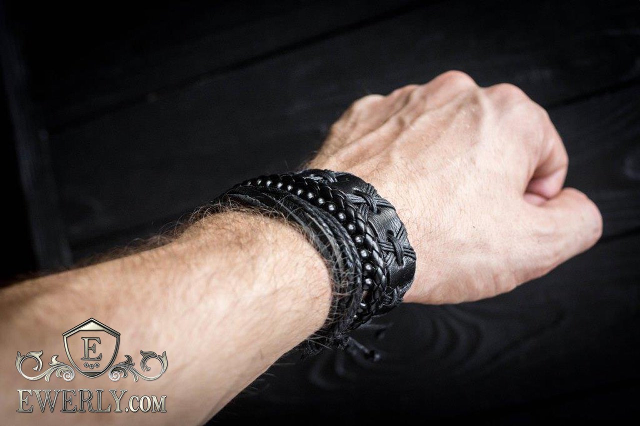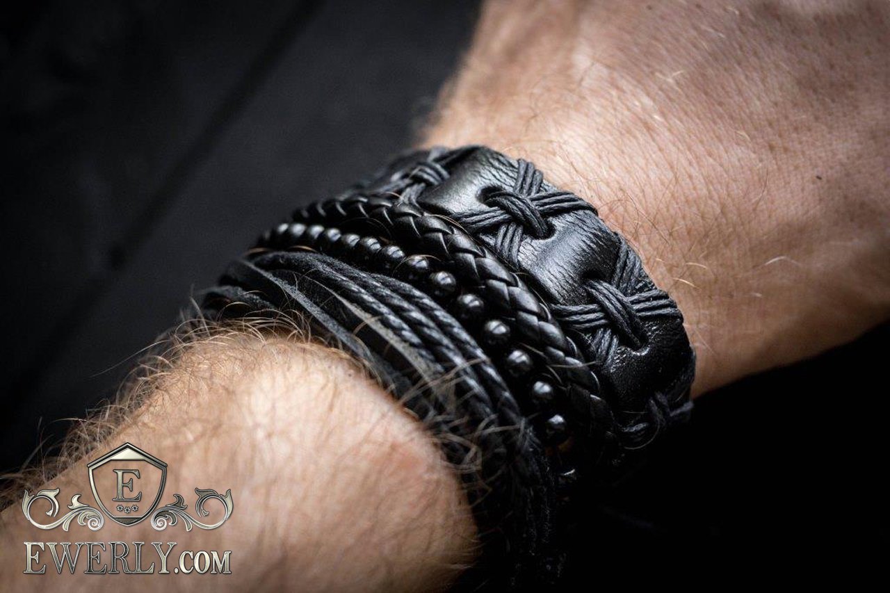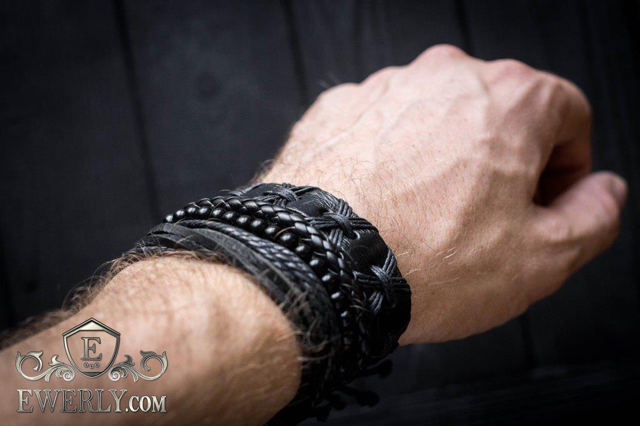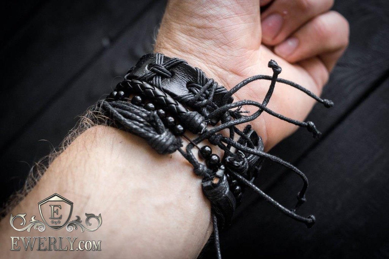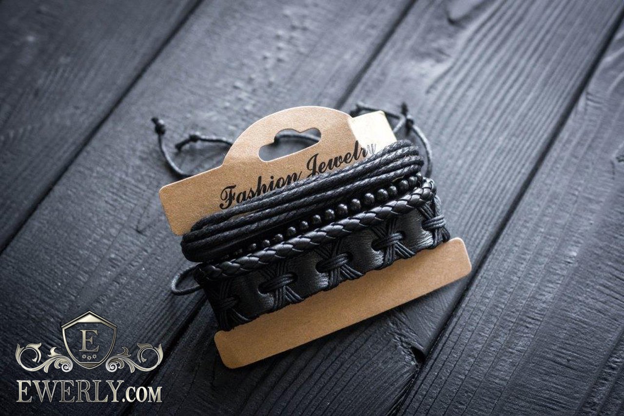 - Three leather bracelets with adjustable cord and one bracelet of beads.