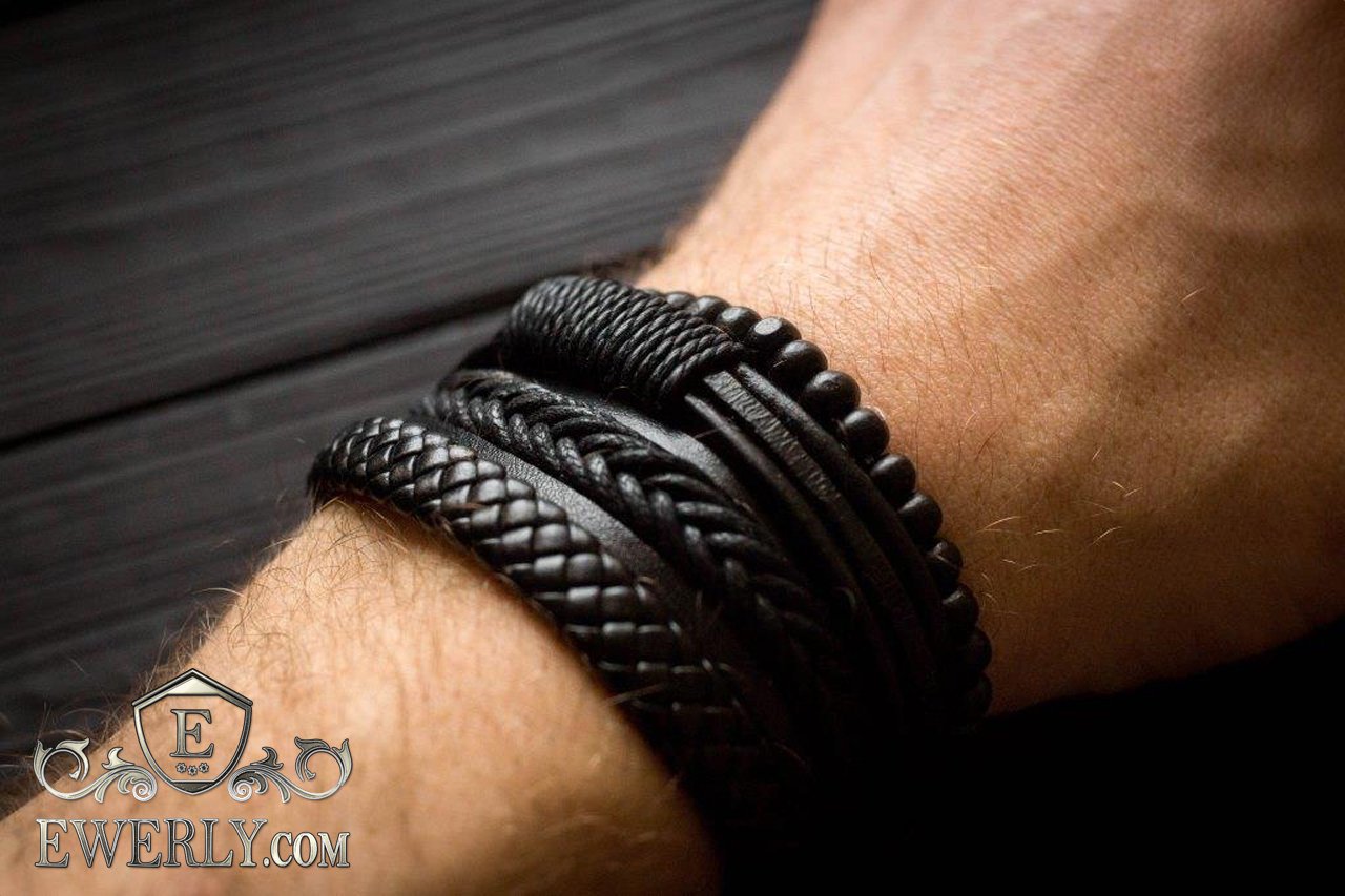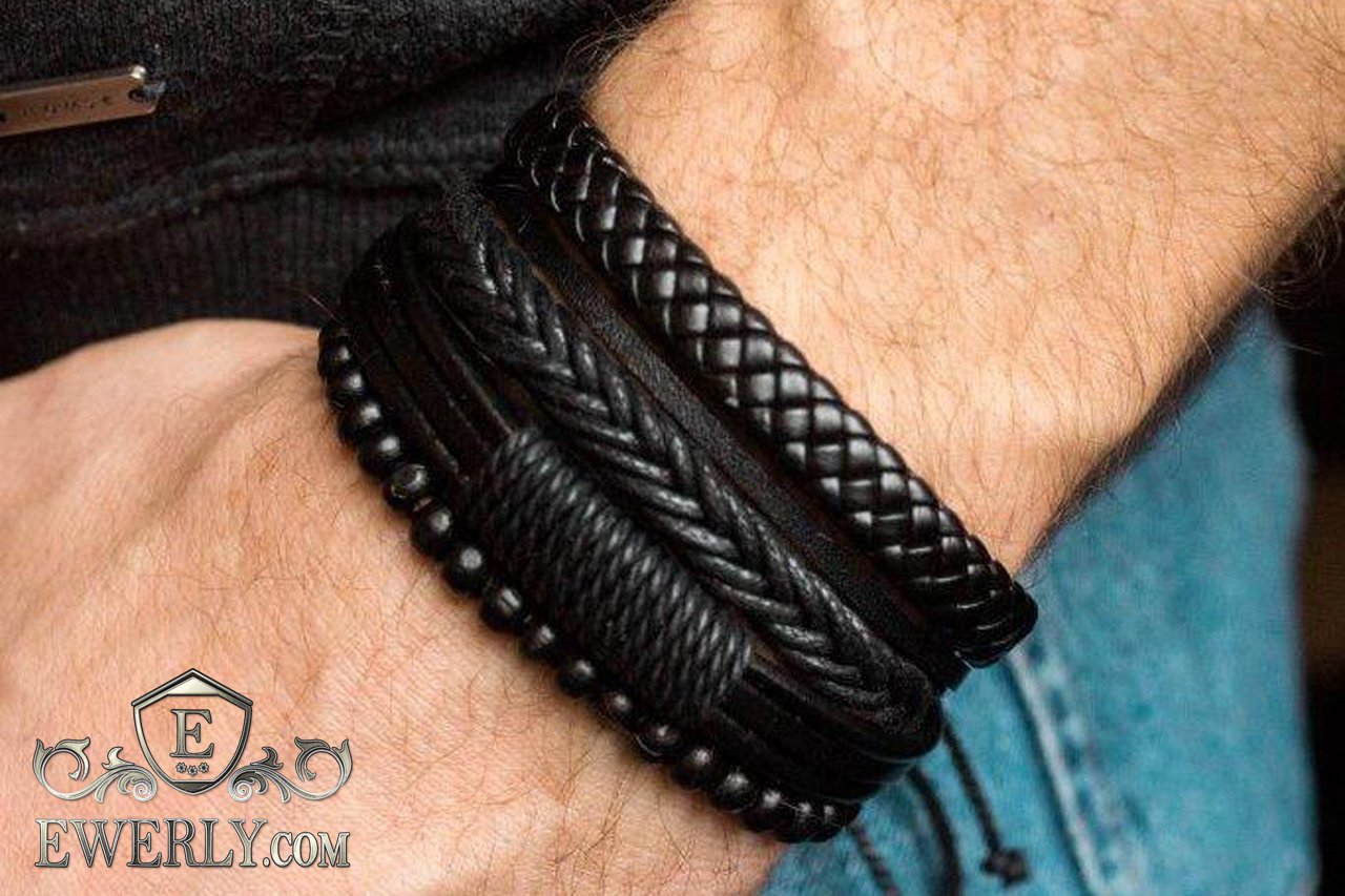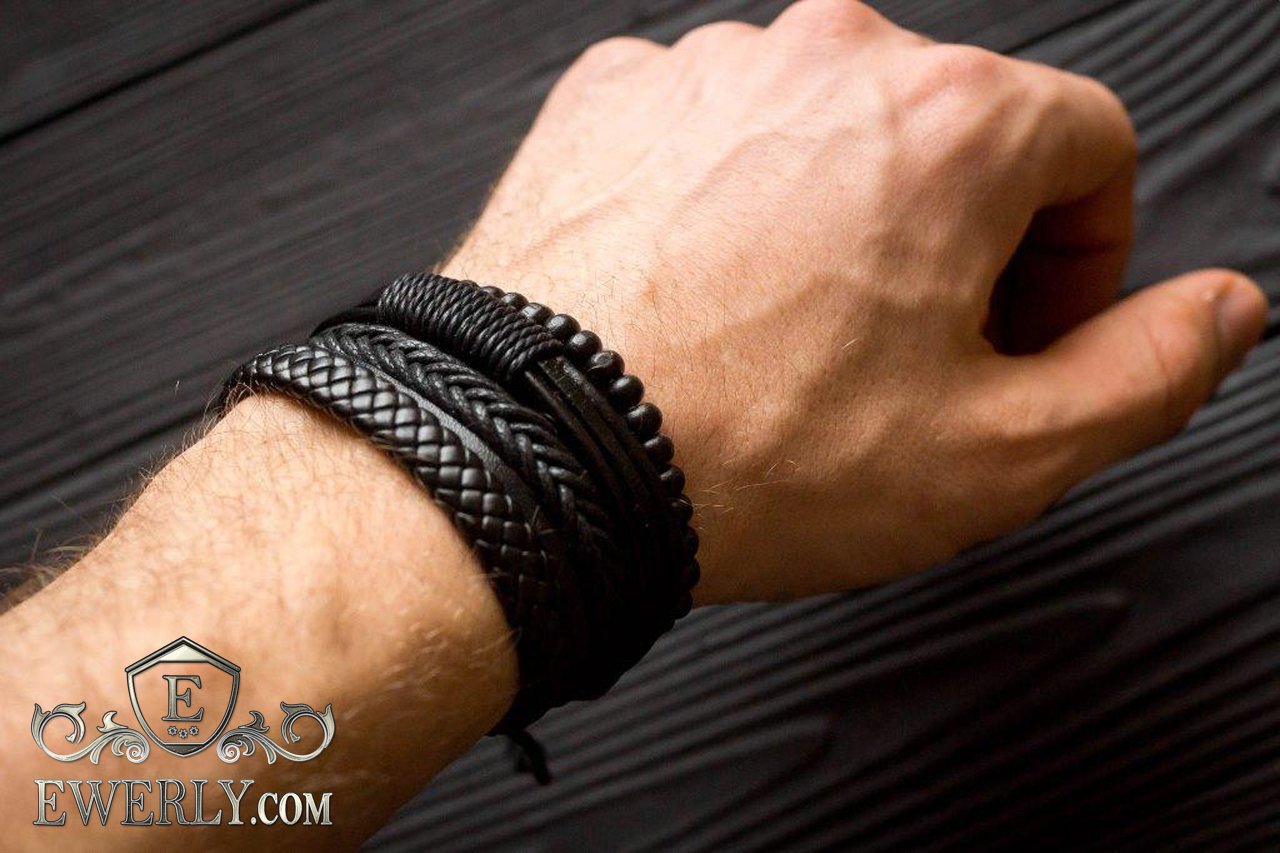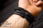 - Three leather bracelets with adjustable cord.