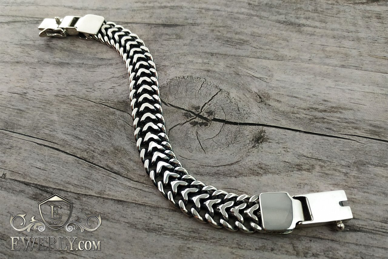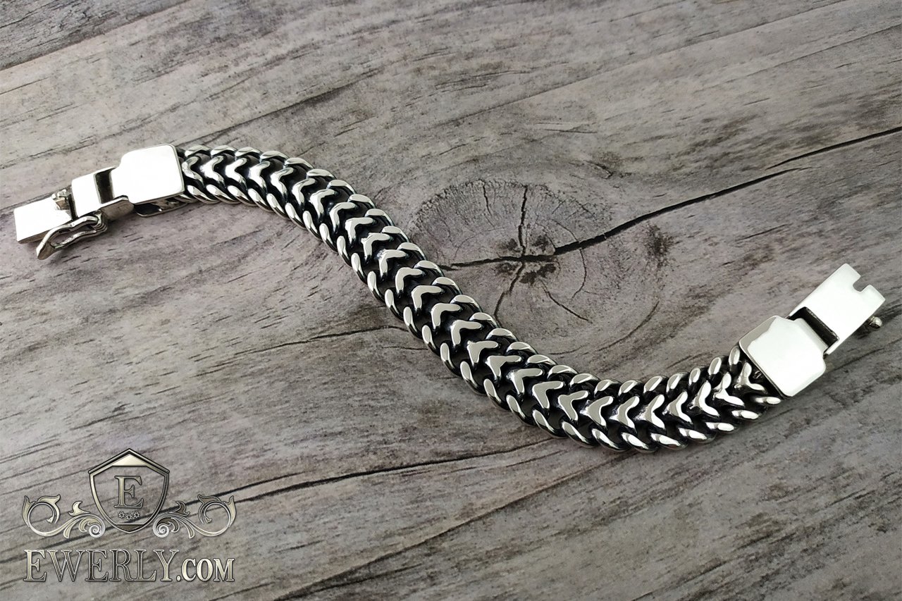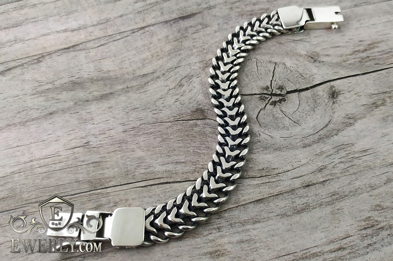 Thick men's bracelet "Tractor (double carapace)" of silver 121025SE