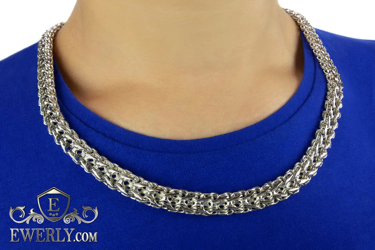 Full-fledged silver chain around the neck. This weaving is quite time consuming to execute, and most jewelers do not have a sufficient level of manufacturing skills to achieve high quality jewelry, let alone just make it. At the moment, the quality of our work from this weaving is significantly superior to most other manufacturers.
