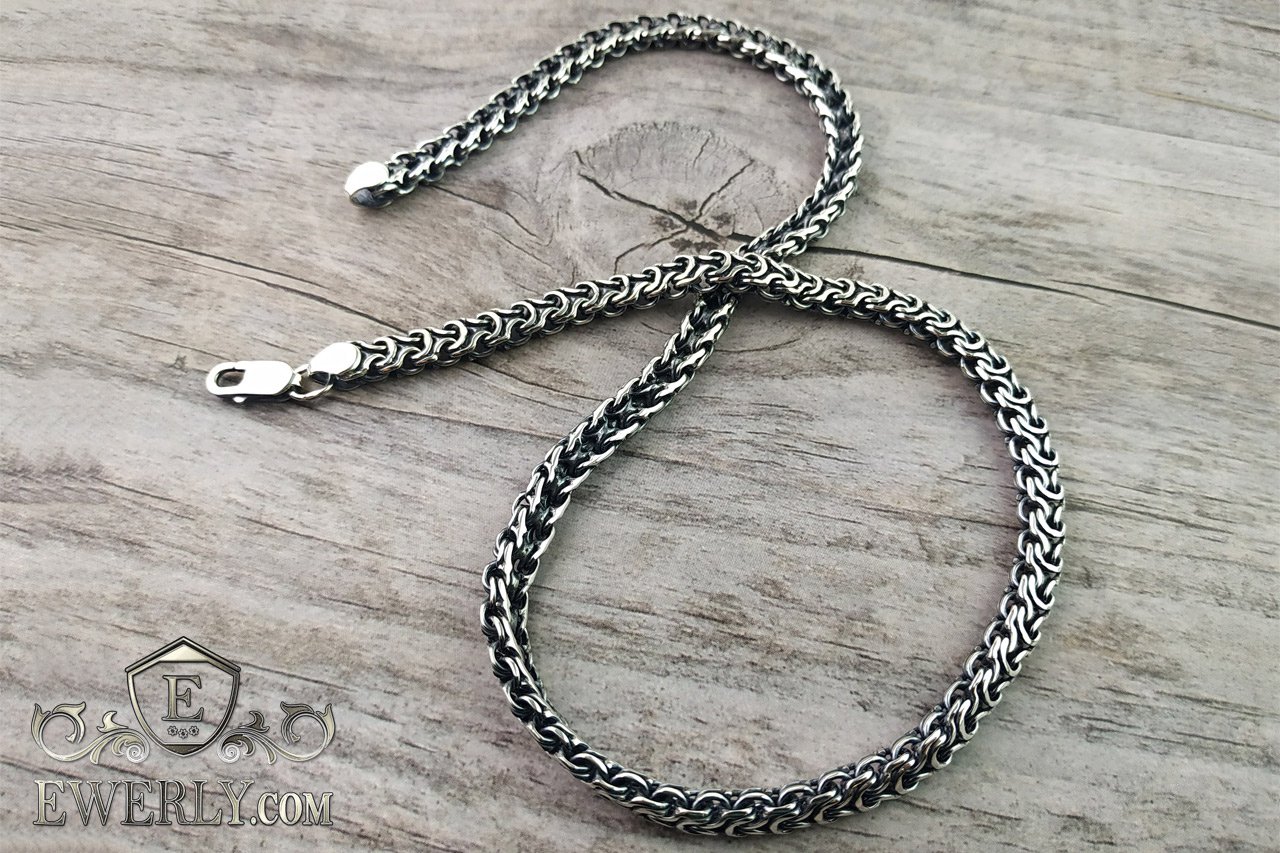 Full-fledged silver chain around the neck. A unique weaving, developed by our craftsmen, and at the moment You will not find it anywhere else. You can buy or order products from this weaving only from us.