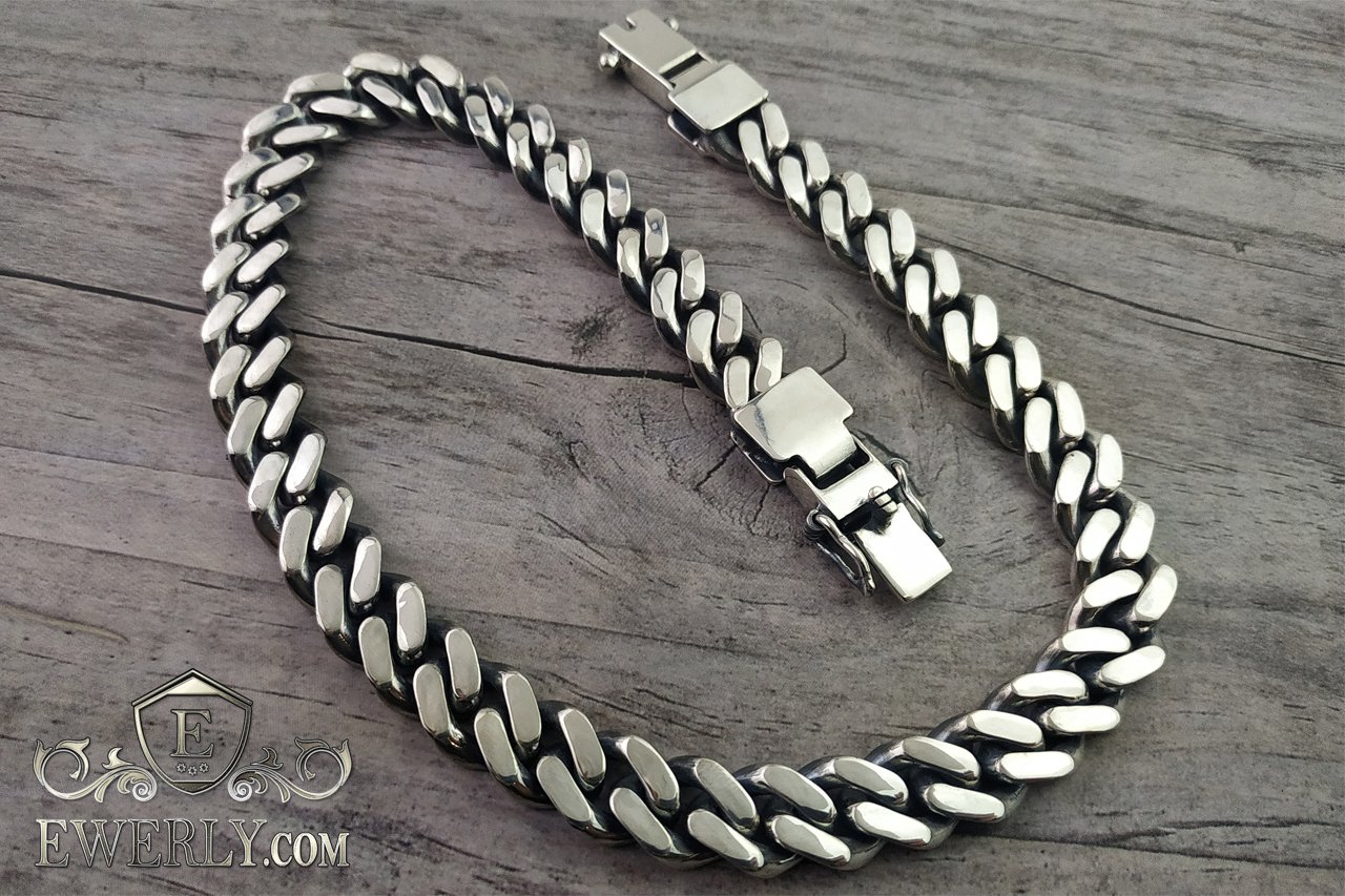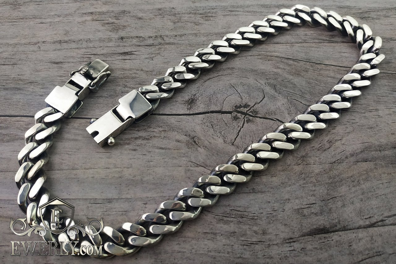 Full-fledged chain. Large men's silver chain "Carapace" with a clasp "Box" and weighing 215 grams and a length of 50 cm. It is made by a foundry on in advance prepared model therefore without additional modeling the size of elements cannot be changed. Height of links is 4.5 mm.