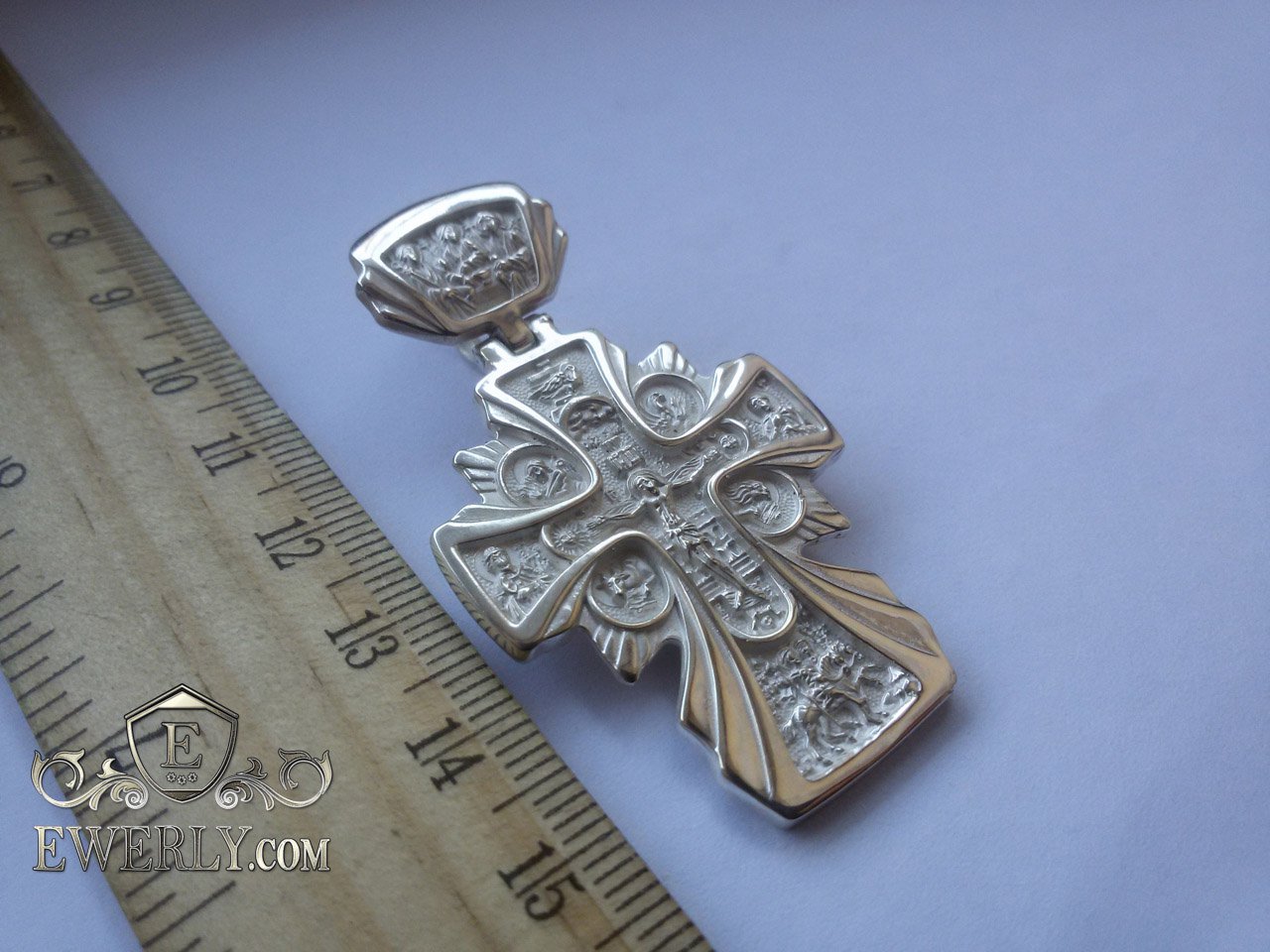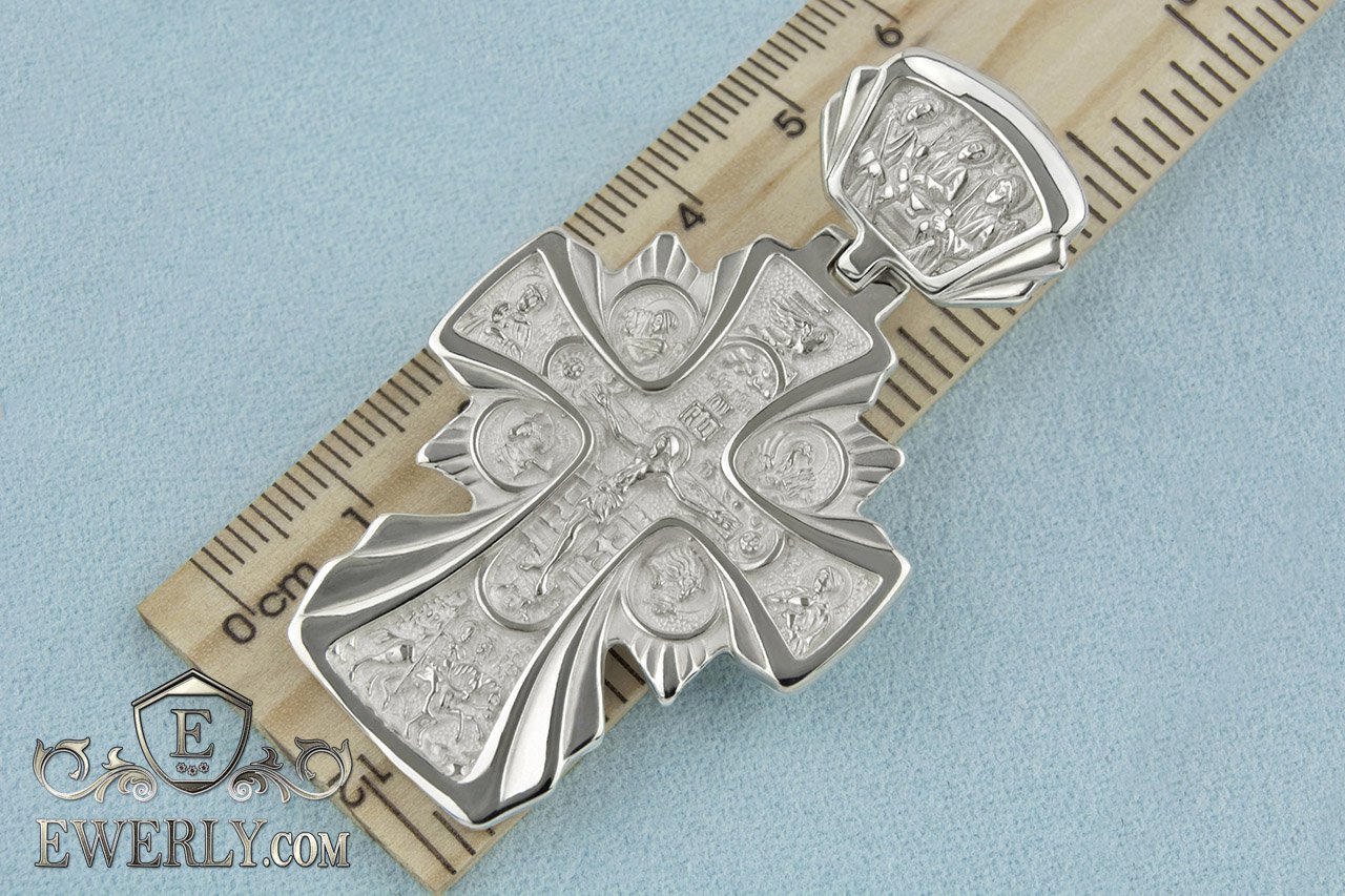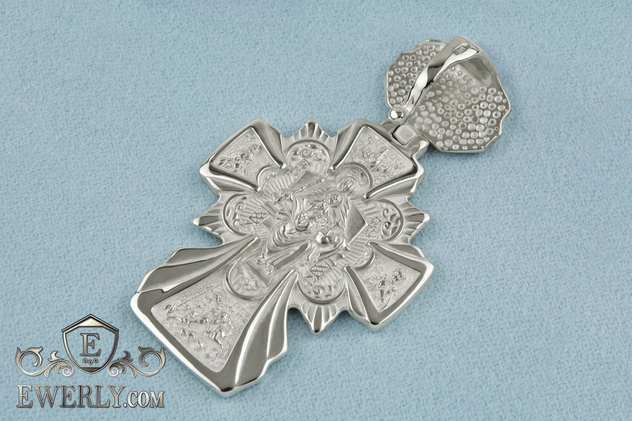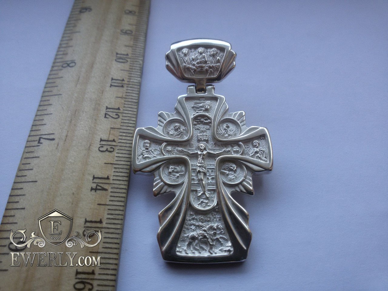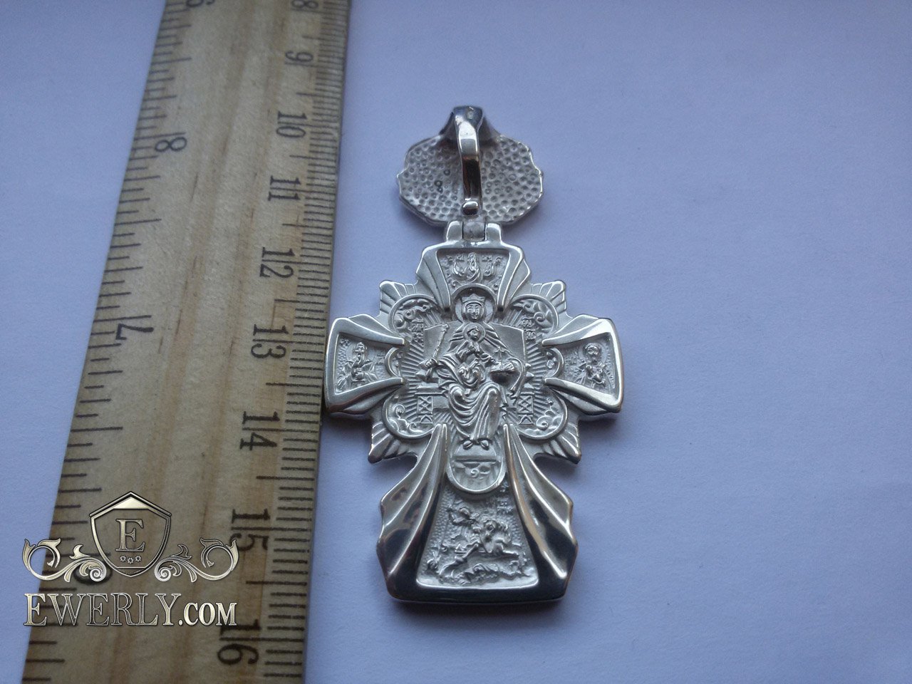 In the photo: Men's Orthodox cross with the crucifixion of Christ and the Icon of the Mother of God. Length: 3.9 cm