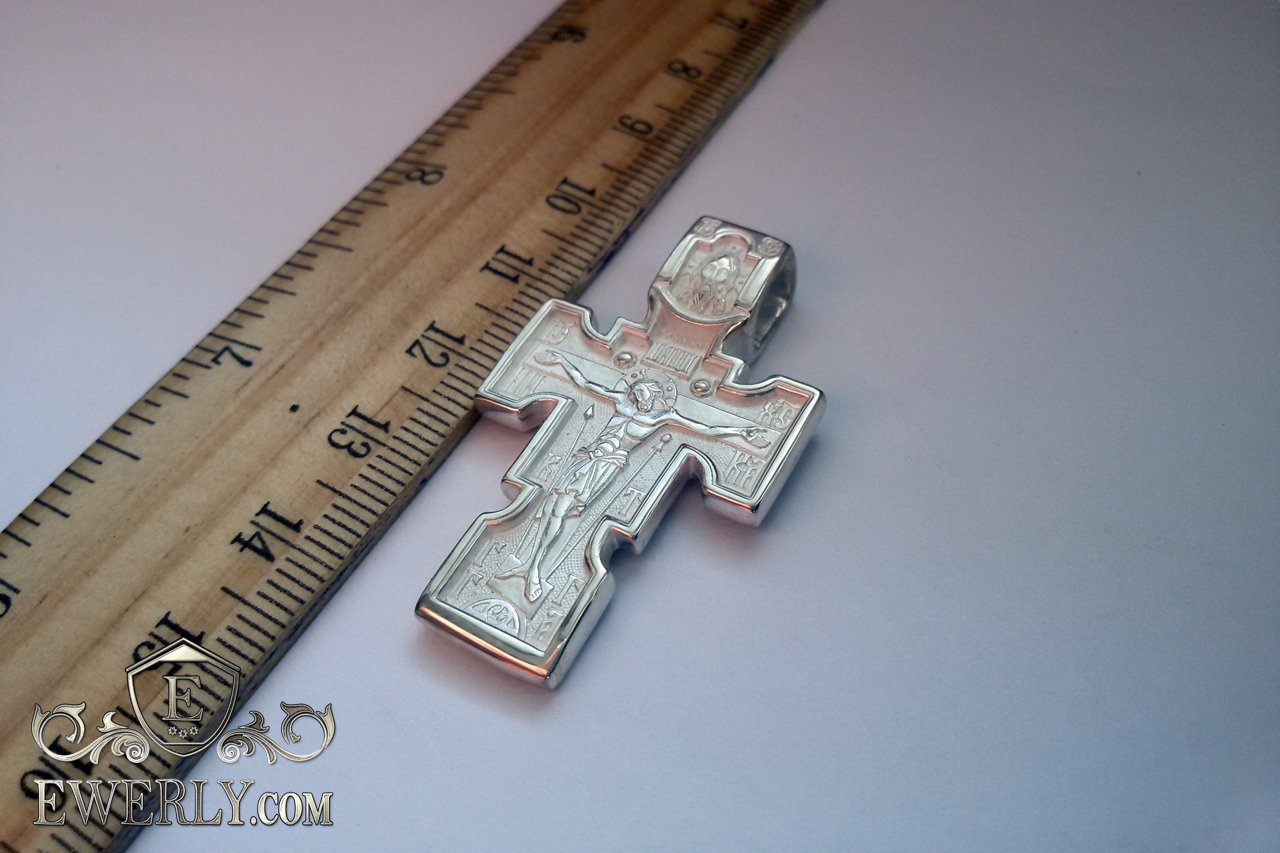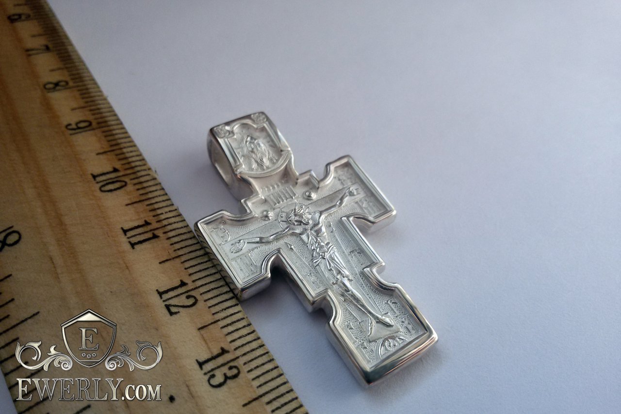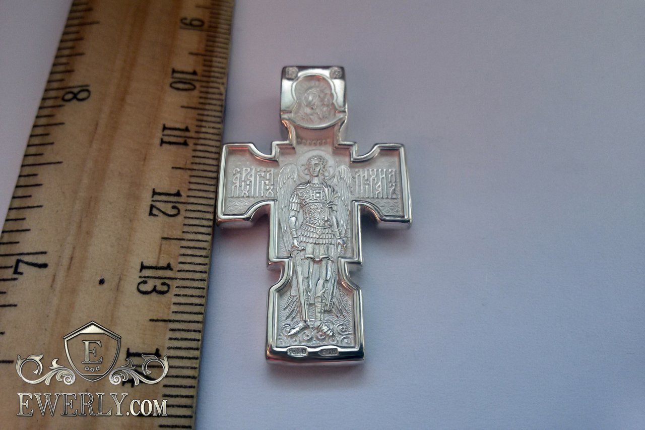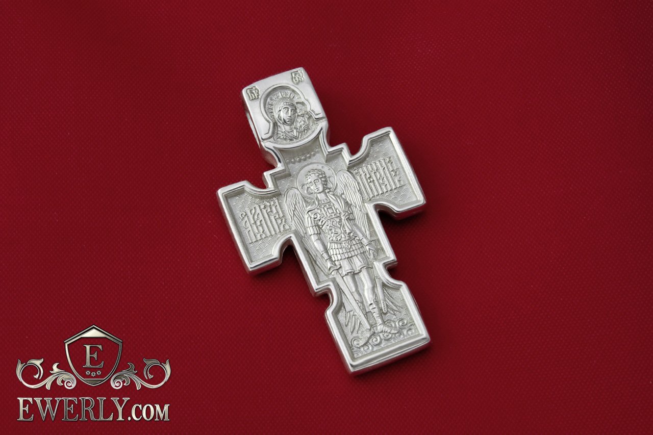 In the photo: Orthodox pectoral cross with the crucifixion of Christ. Archangel Michael. Kazan icon of the Mother of God. Height: 6.5 mm