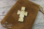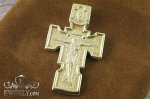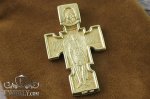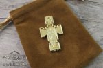 In the photo: Big Orthodox men's golden cross with the crucifixion of Christ on the one side and on the other: Archangel Michael and Kazan icon of the Mother of God. Height: 6.5 mm