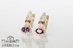Earrings - drops of silver with gold plates, stones of color amethyst