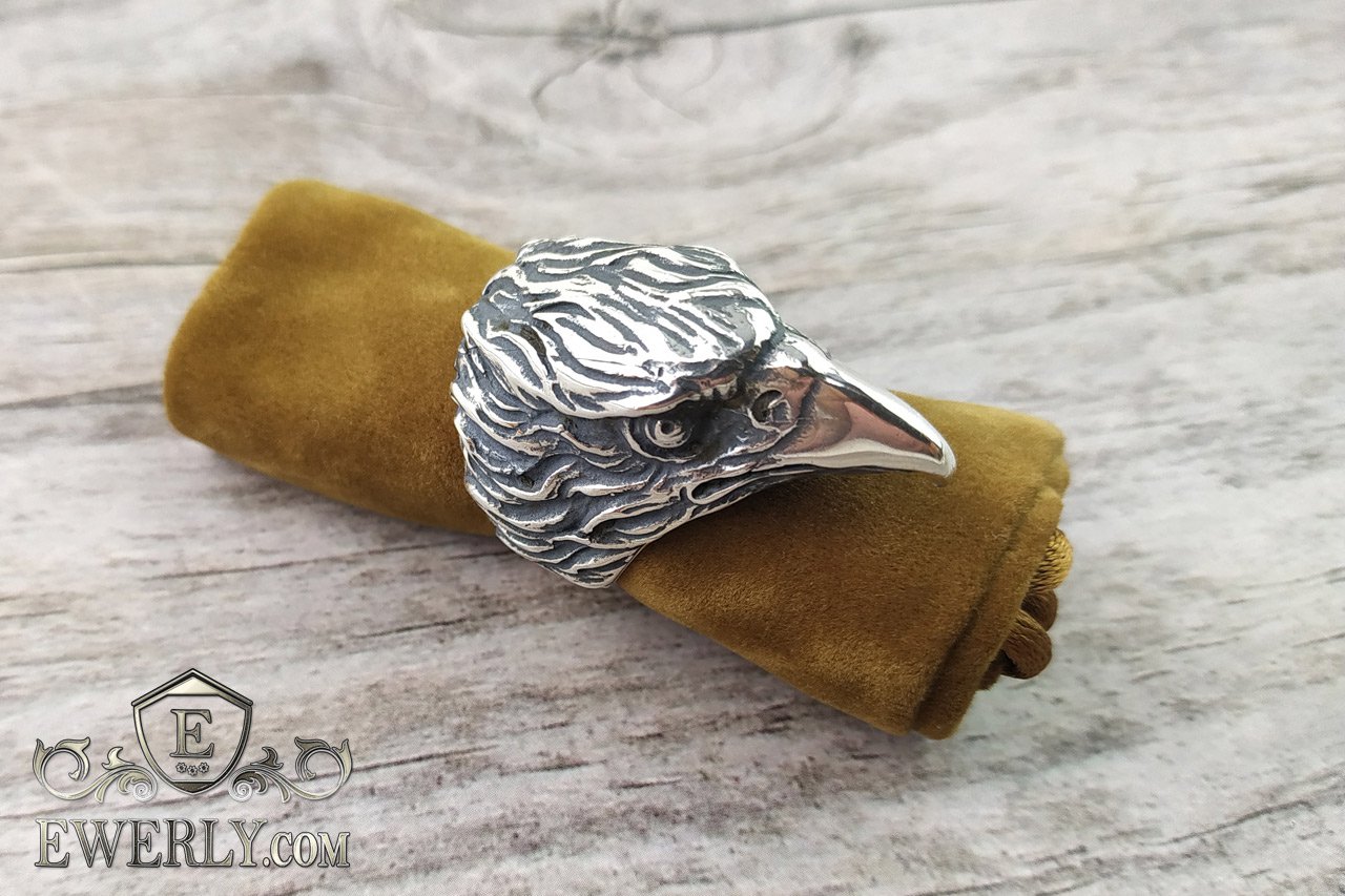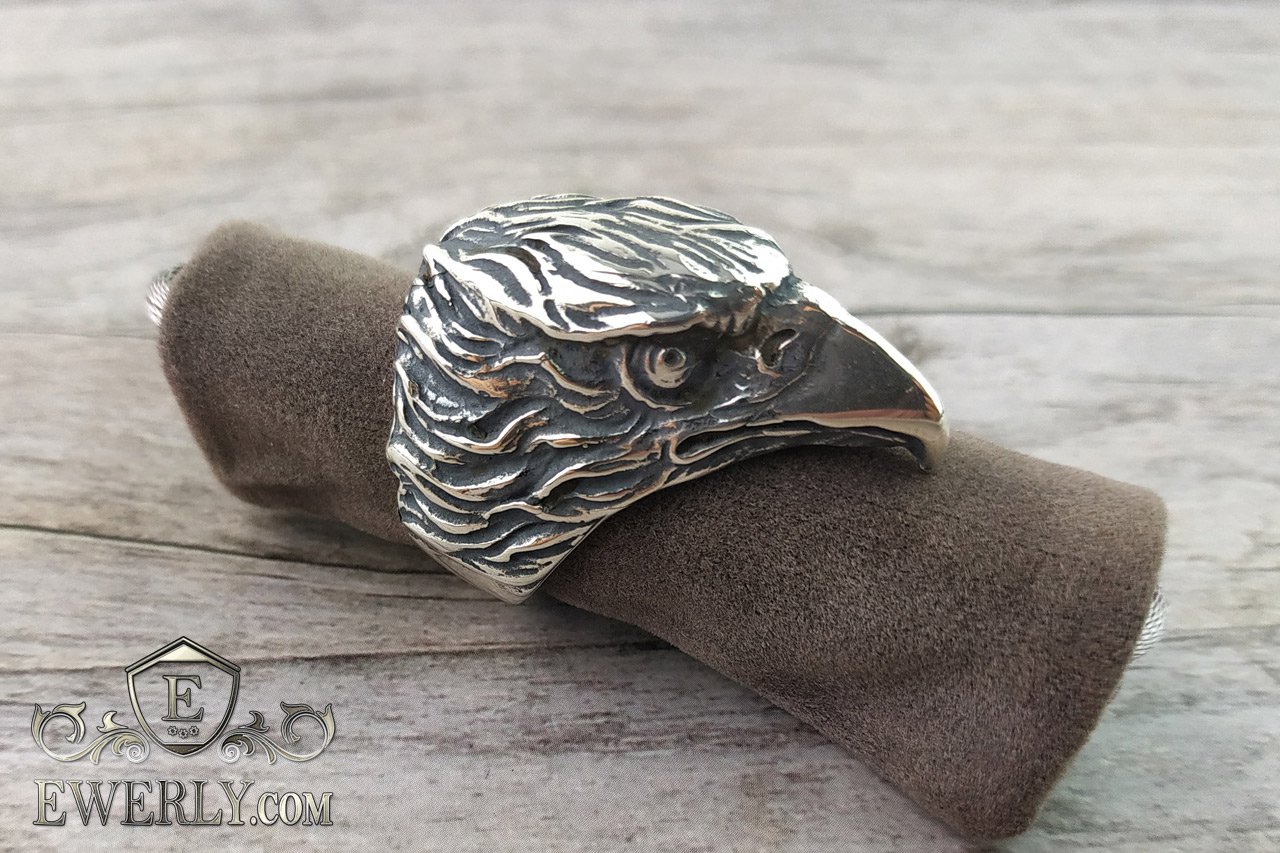 An available version of the silver ring with an eagle with blackening, as well as without blackening on request. We recommend!