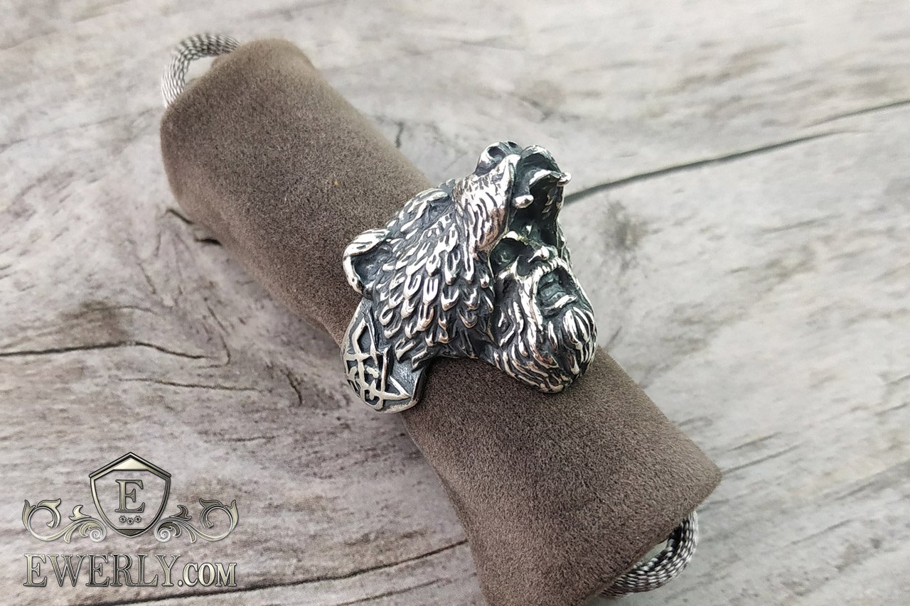 Available version of the silver ring "Man - a bear" with blackening, as well as without blackening at will. We recommend!