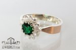 Women's silver ring (925 sterling silver) with 9k gold and green cubic zirconia.