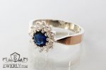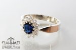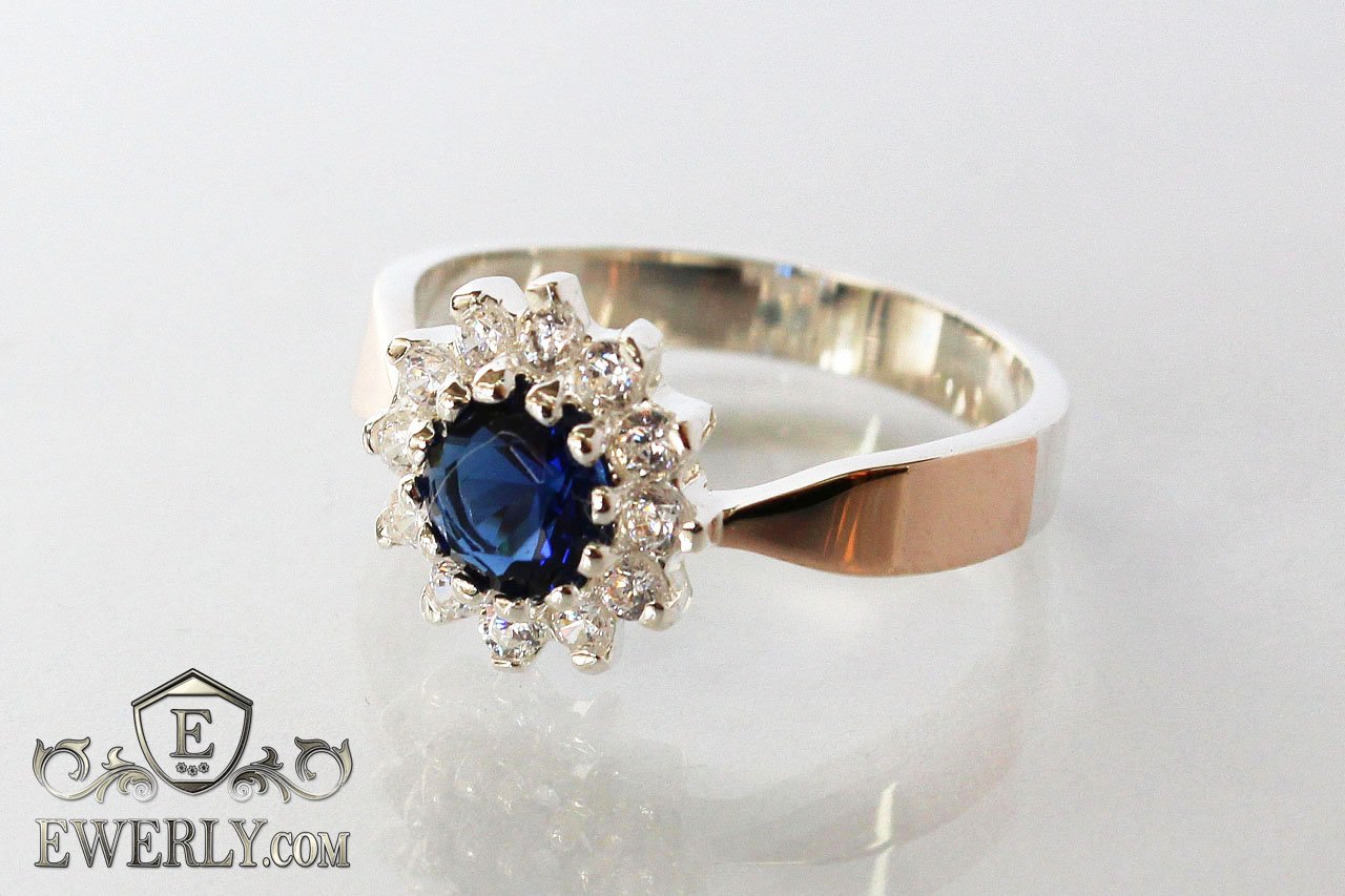Women's silver ring (925 sterling silver) with 9k gold with blue cubic zirconia.