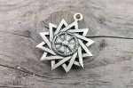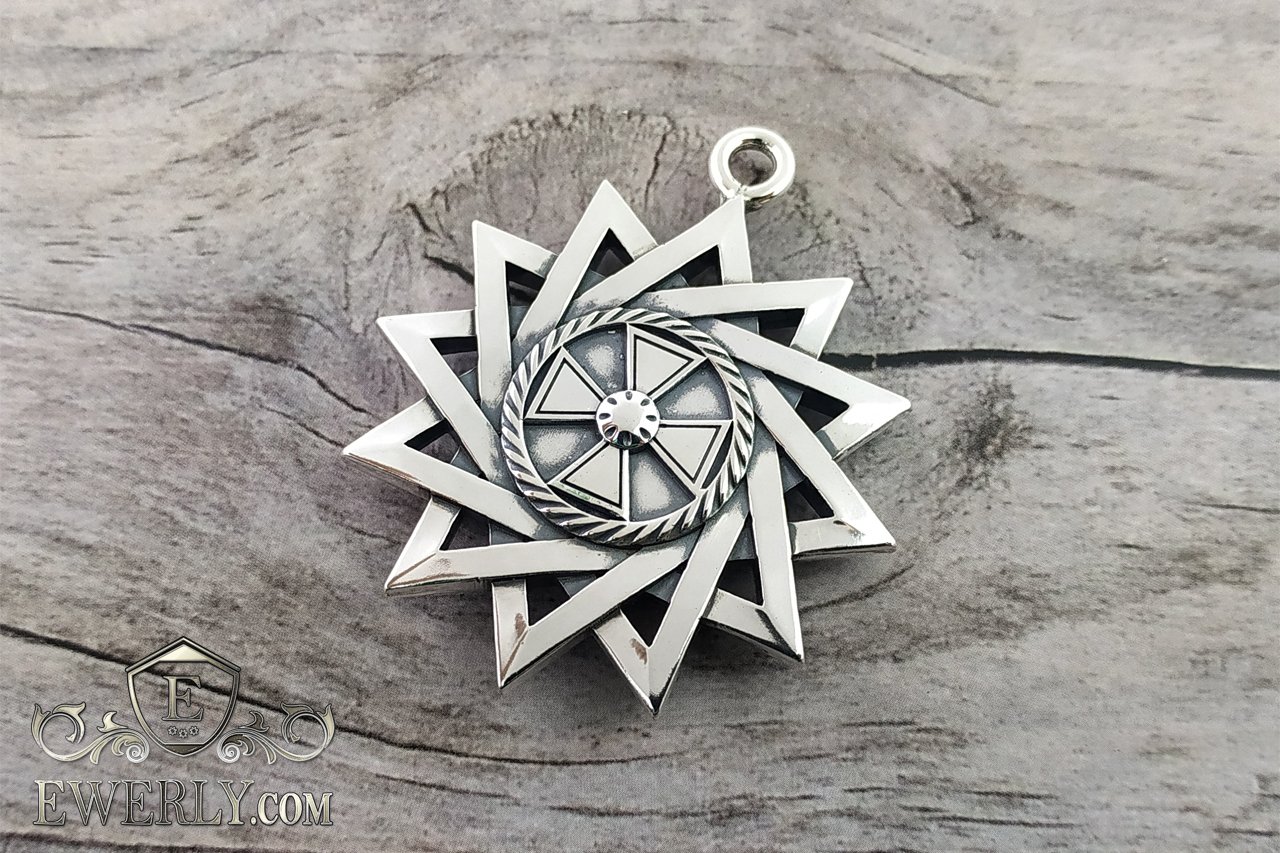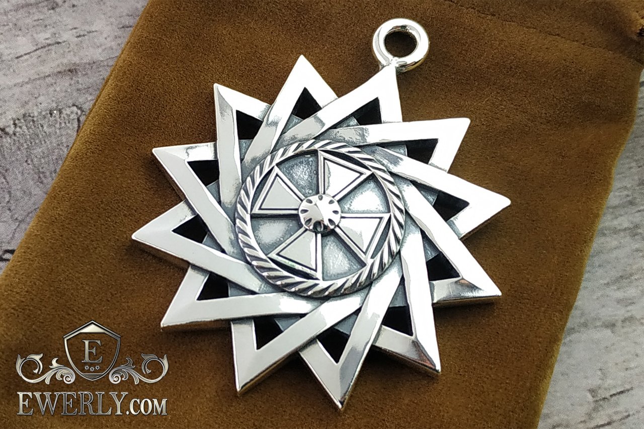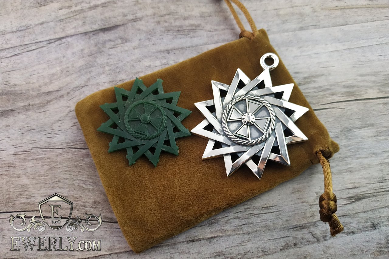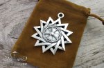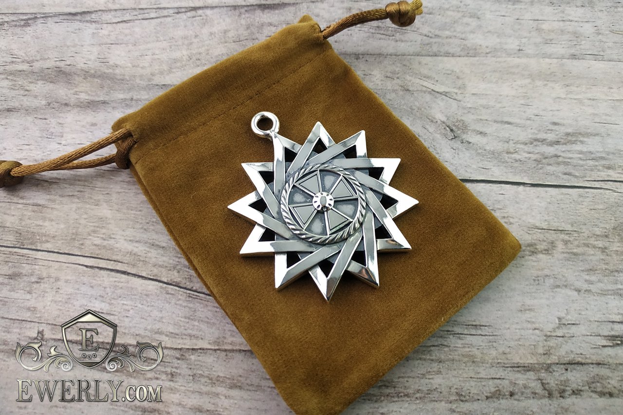 The photo shows a silver pendant "12 ultimate Star of Erzgamma". The sizes of a pendant - a mascot "the Star of Erzgamma" are specified without eyelet.
