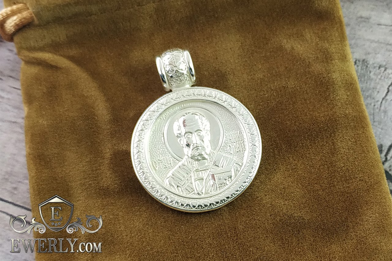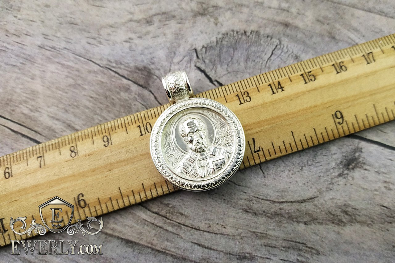 The photo shows a pendant "St. Nicholas the Wonderworker" made of 925 sterling silver. The eyelet of this suspension can be replaced with a larger one, please contact any of our contacts for clarification.