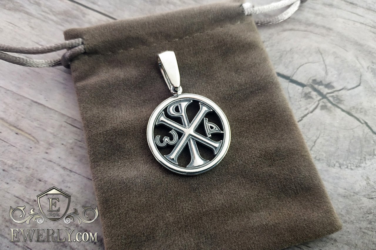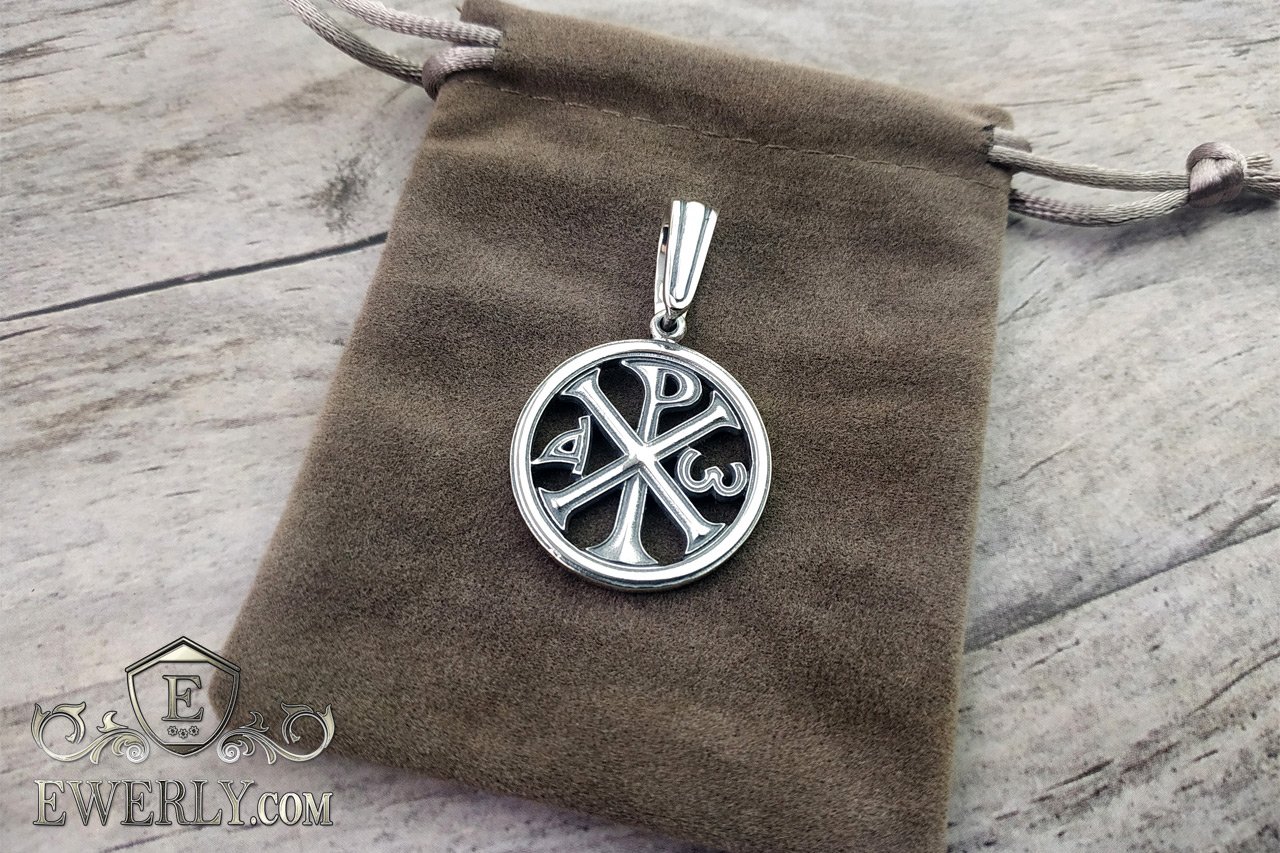 The photo shows a silver pendant "Christogram".