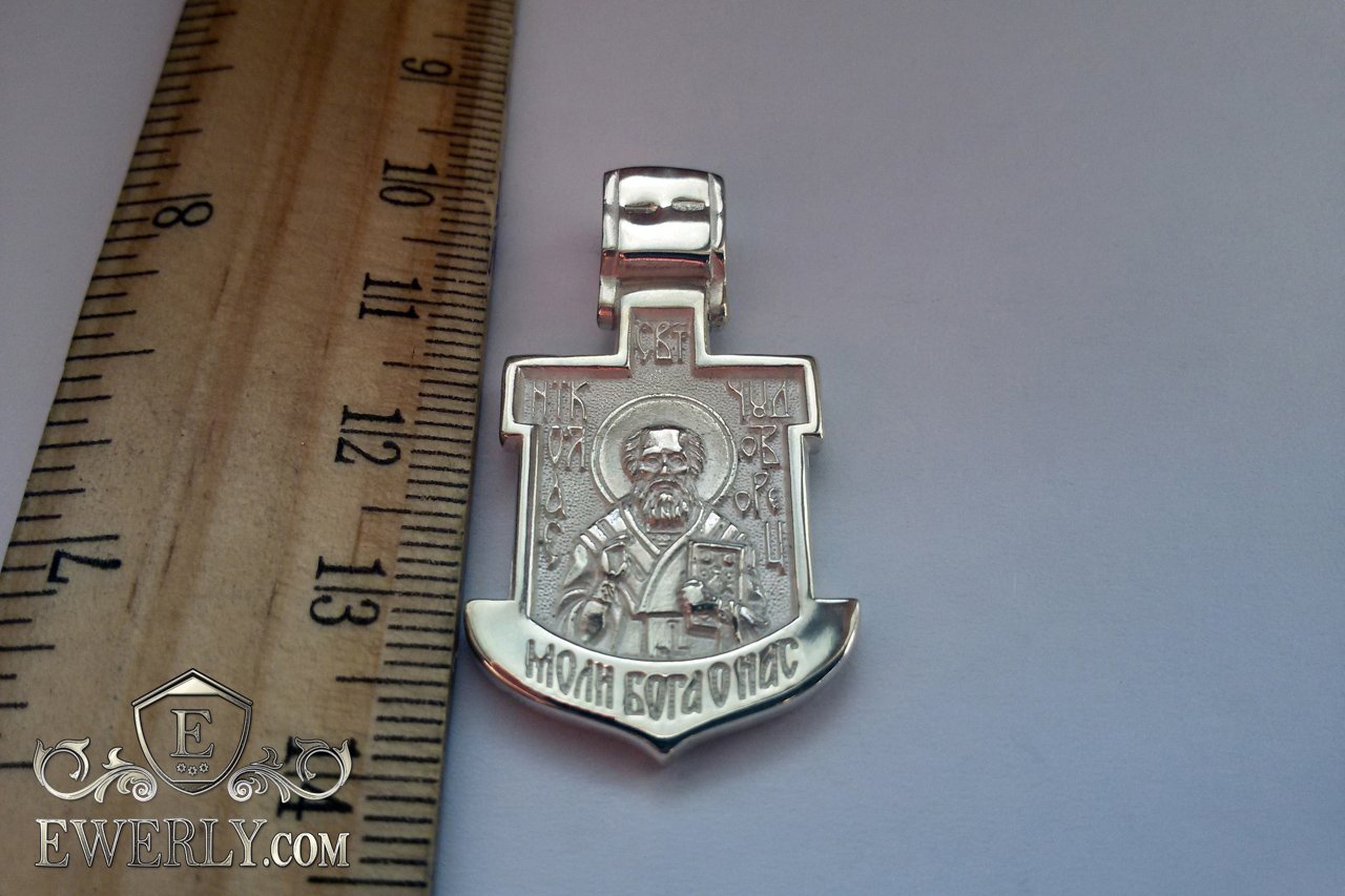 In the photo: Men's icon with the crucifixion of Christ. Saint Nicholas. Length: 3 cm