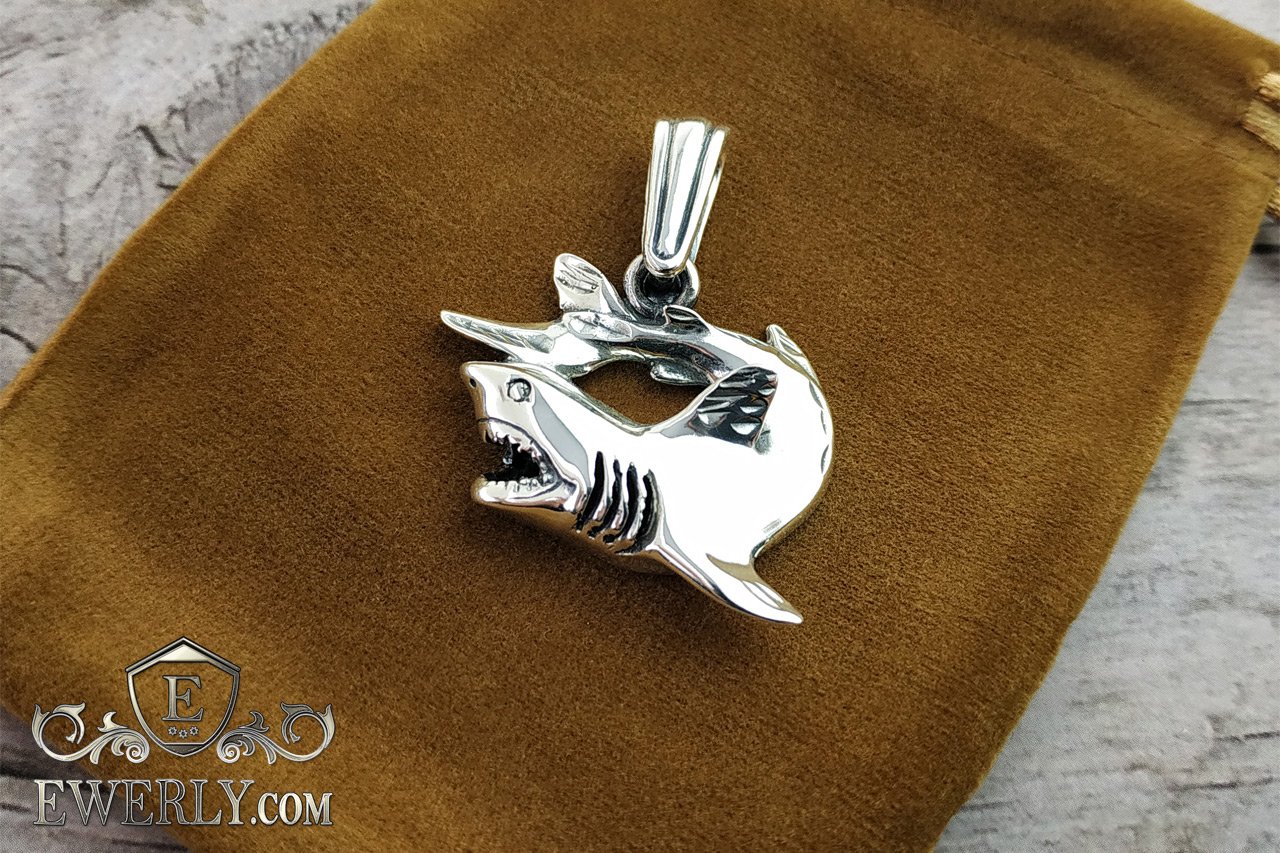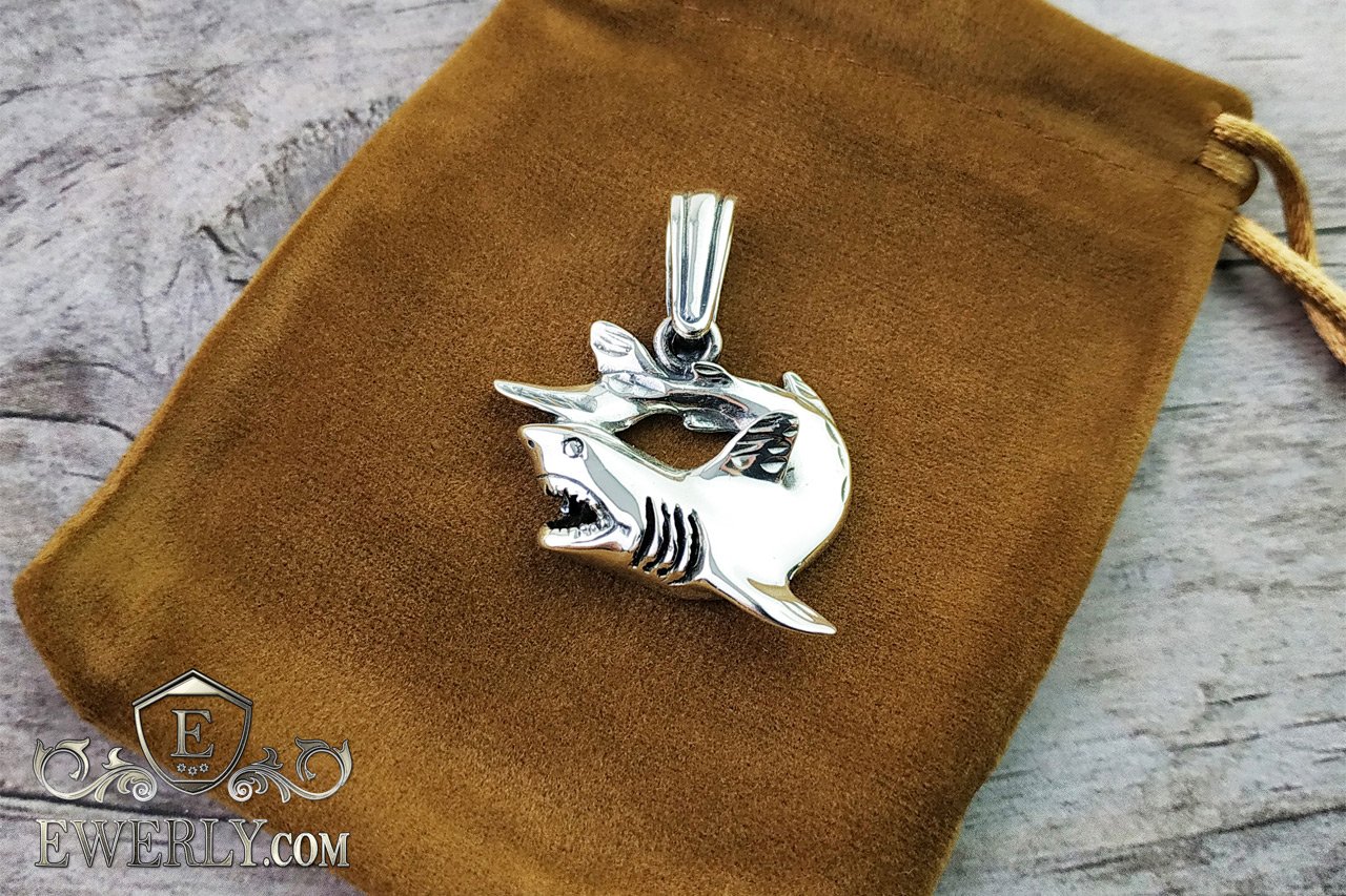 The photo shows a silver pendant "Shark" made of 925 sterling silver with blackening.Length (height): 2.6 cm