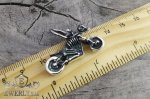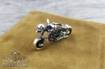 The photo shows a silver pendant "Skeleton on motorcycle" of silver with blackening.