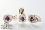 Серебряные серёжки и кольцо из серебра 925 пробы с золотыми вставками 375 пробы и камнями - фианитами (цвет-аметист) для девушки.