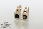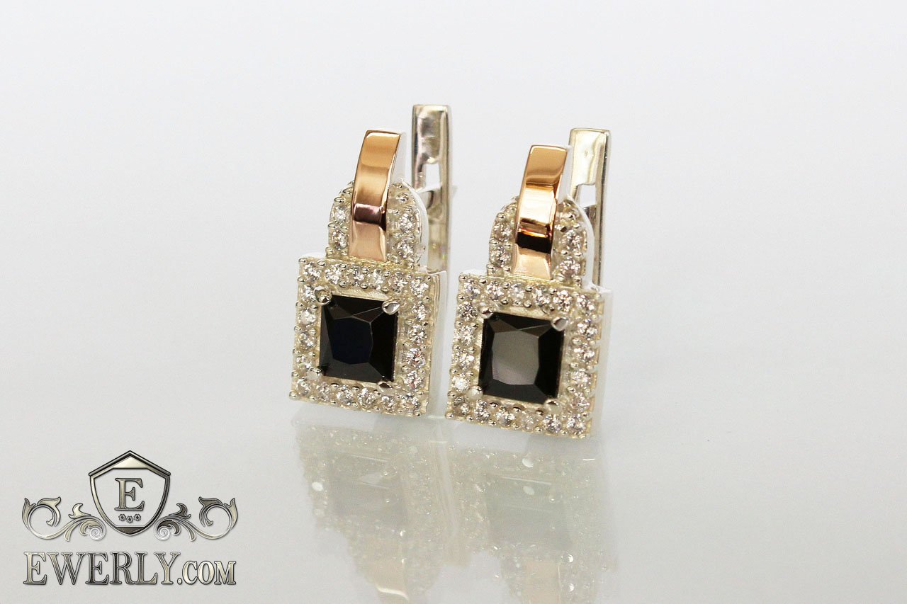 Серебряные серьги с золотыми вставками и чёрными фианитами