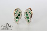 Женские серьги из серебра 925 пробы с золотом 375 пробы и зелёными камнями.