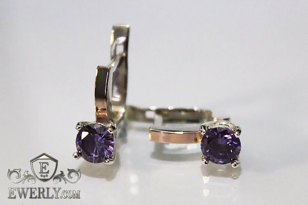 Серьги из серебра 925 пробы с золотом и фианитами (аметистовый цвет)