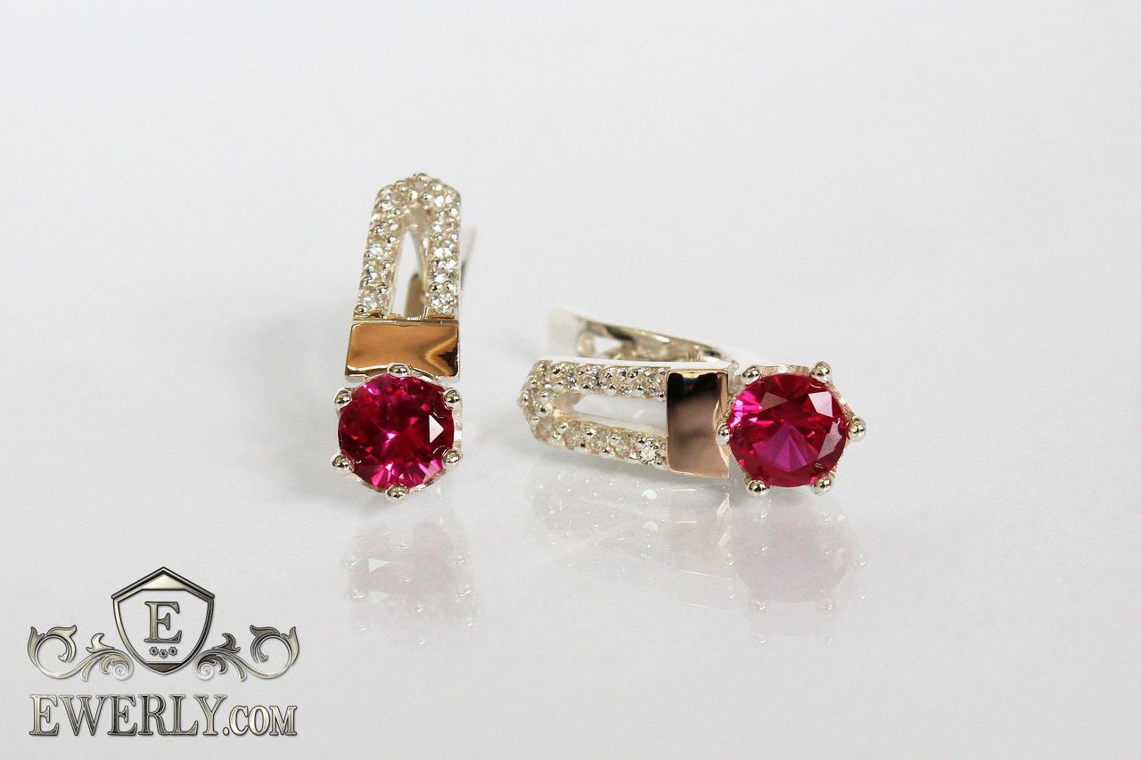 Серьги из серебра с фианитами (рубиновый цвет) для женщин