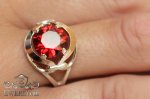 Женское серебряное кольцо 925 пробы с золотыми пластинами 375 пробы и фианитом (гранатовый цвет).