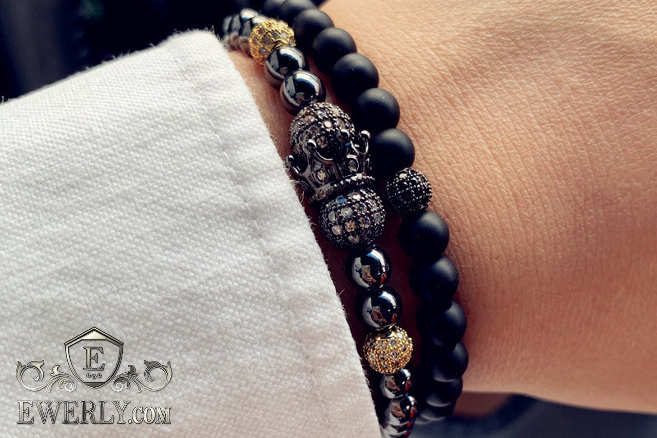 Комплект из двух каменных браслетов на руку для мужчины 123059EP
