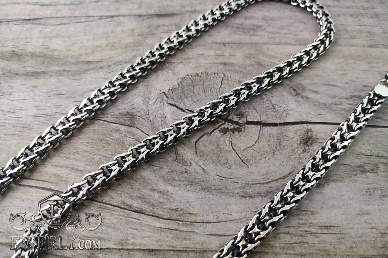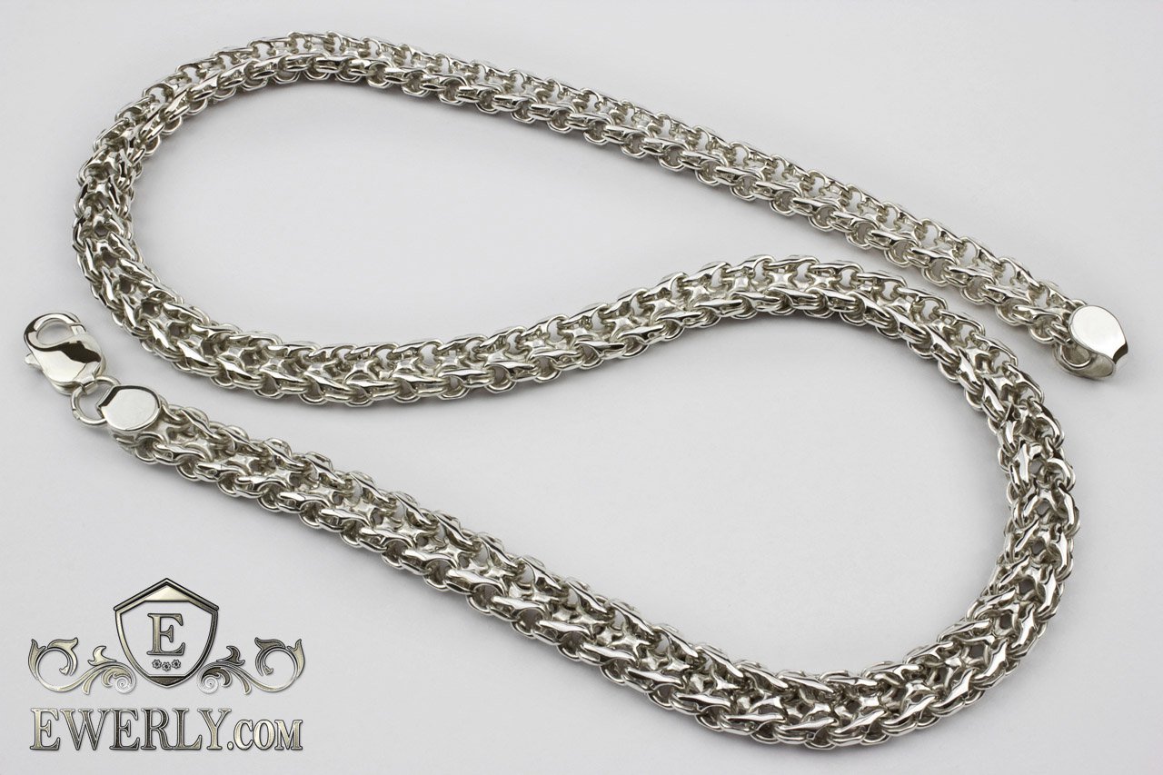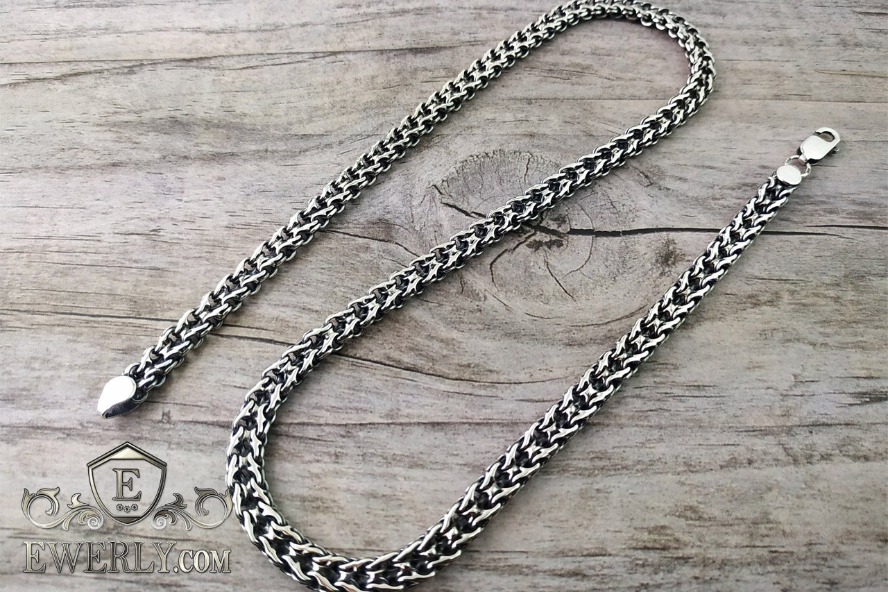 Полновесная серебряная цепочка на шею. Данное плетение достаточно трудоёмкое в исполнении, и большинство ювелиров не обладают достаточным уровнем навыков в изготовлении, чтобы достичь высокого качества украшений, не говоря уже о том, чтобы просто изготовить. На текущий момент качество наших работ из этого плетения существенно превосходит большинство других производителей.