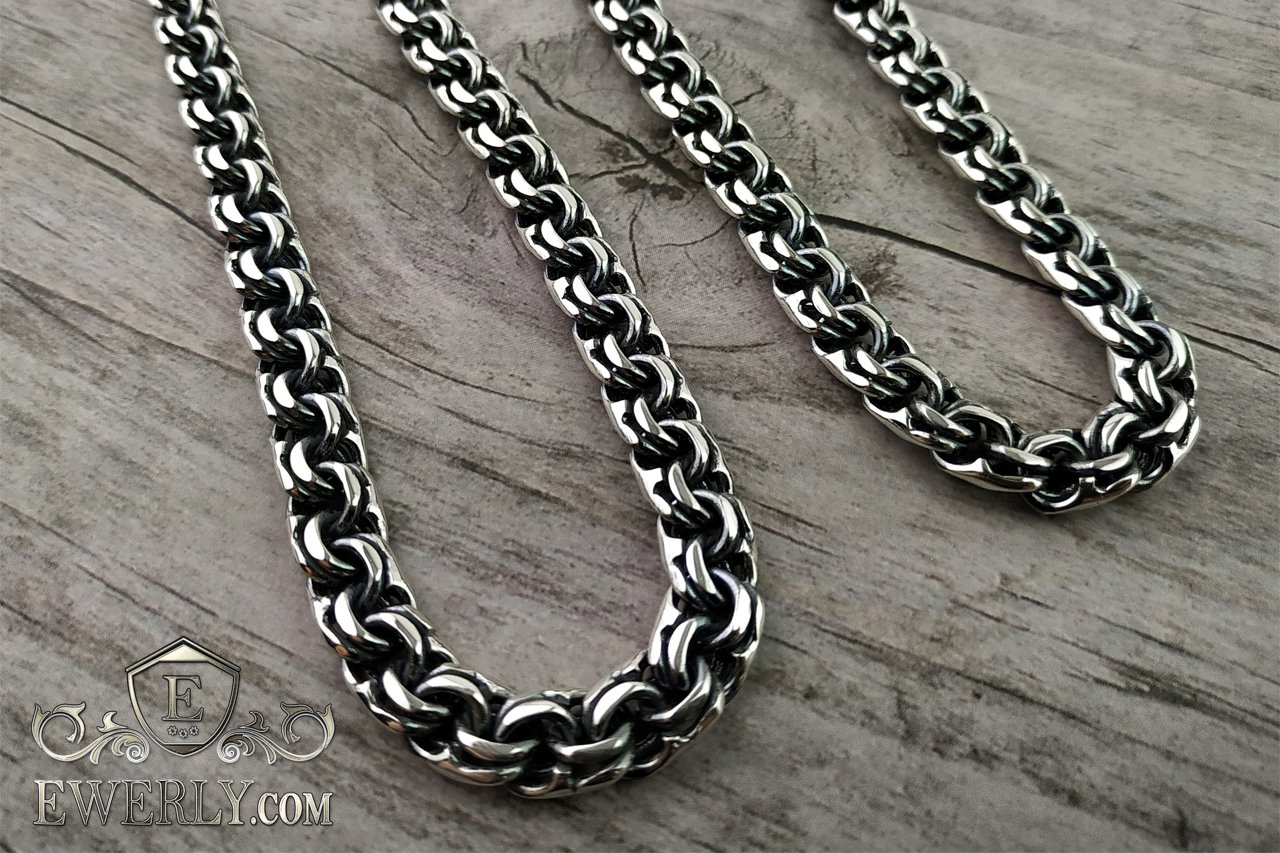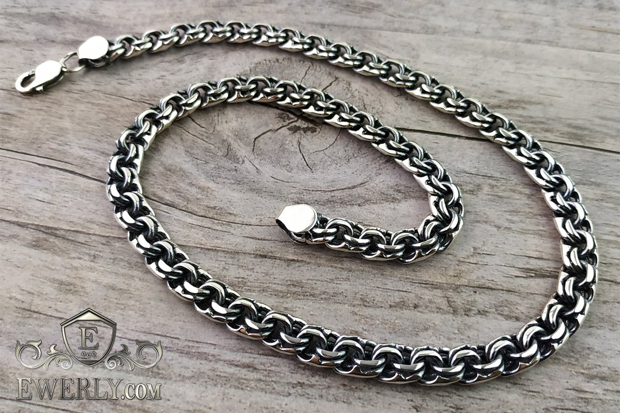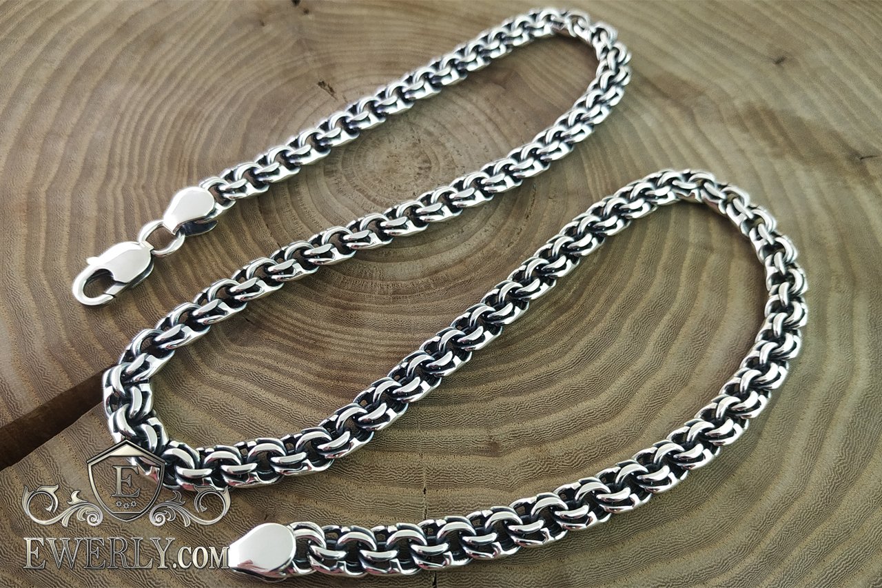 Плетение Бисмарк - мужская серебряная цепочка 55 см