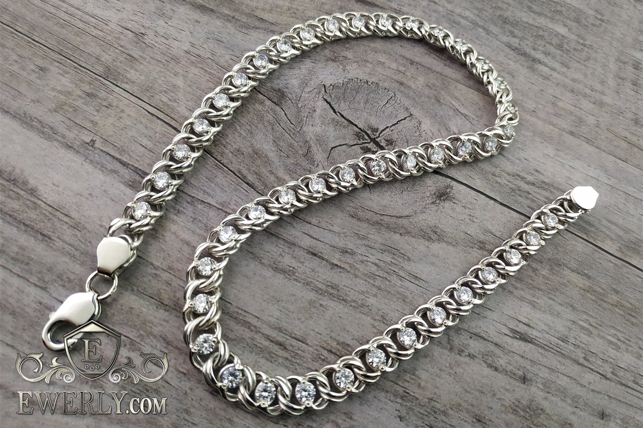 Серебряная цепочка с белыми камнями - Арабский бисмарк из серебра