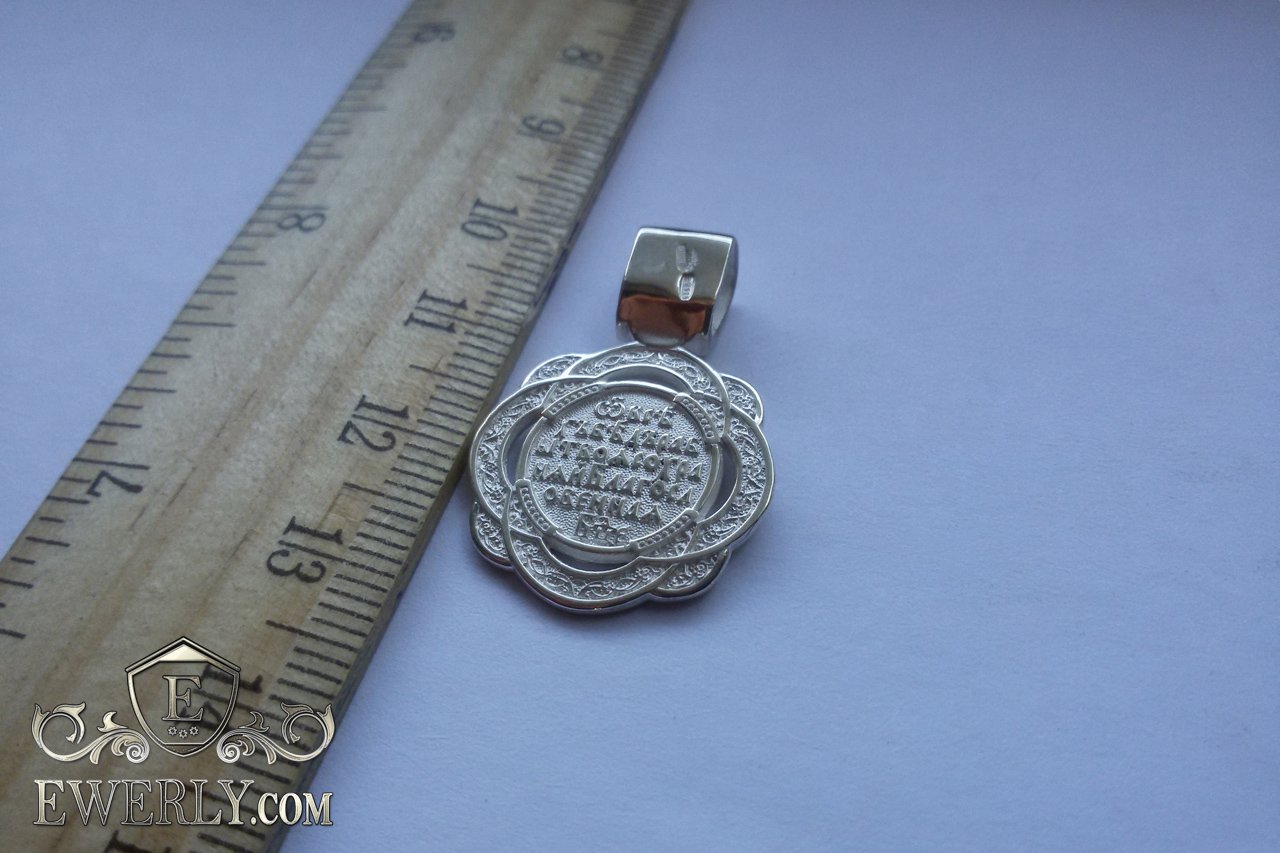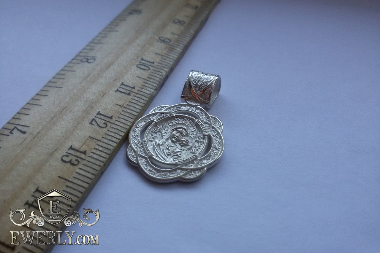 На фото: Серебряная ладанка с изображением казанской иконы Божией Матери. Длина: 2 см