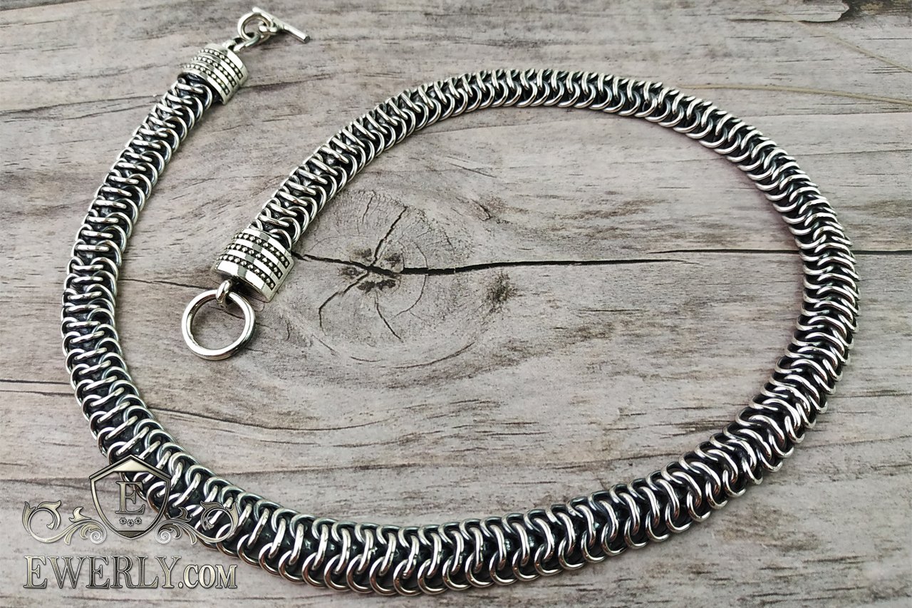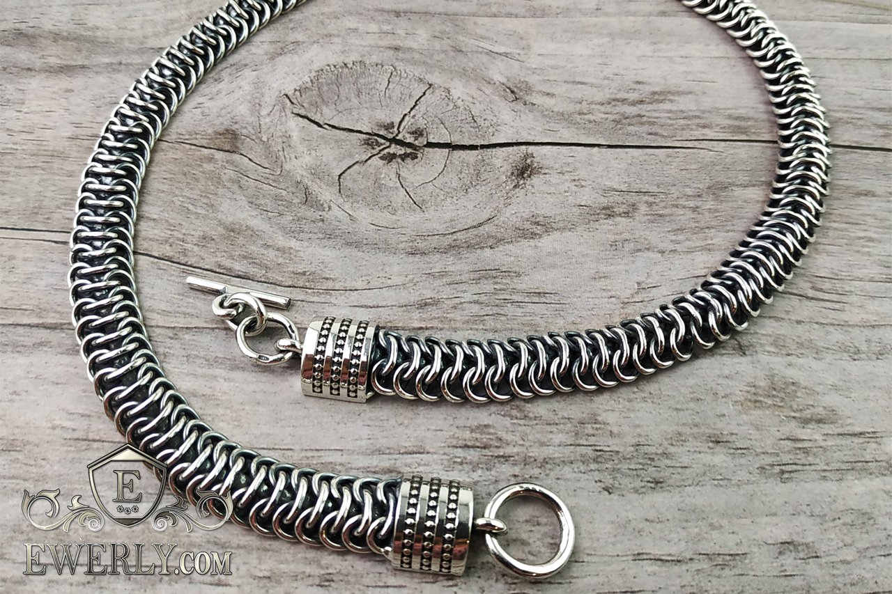 Мужская серебряная цепь на шею "Чешуя дракона" с чернением