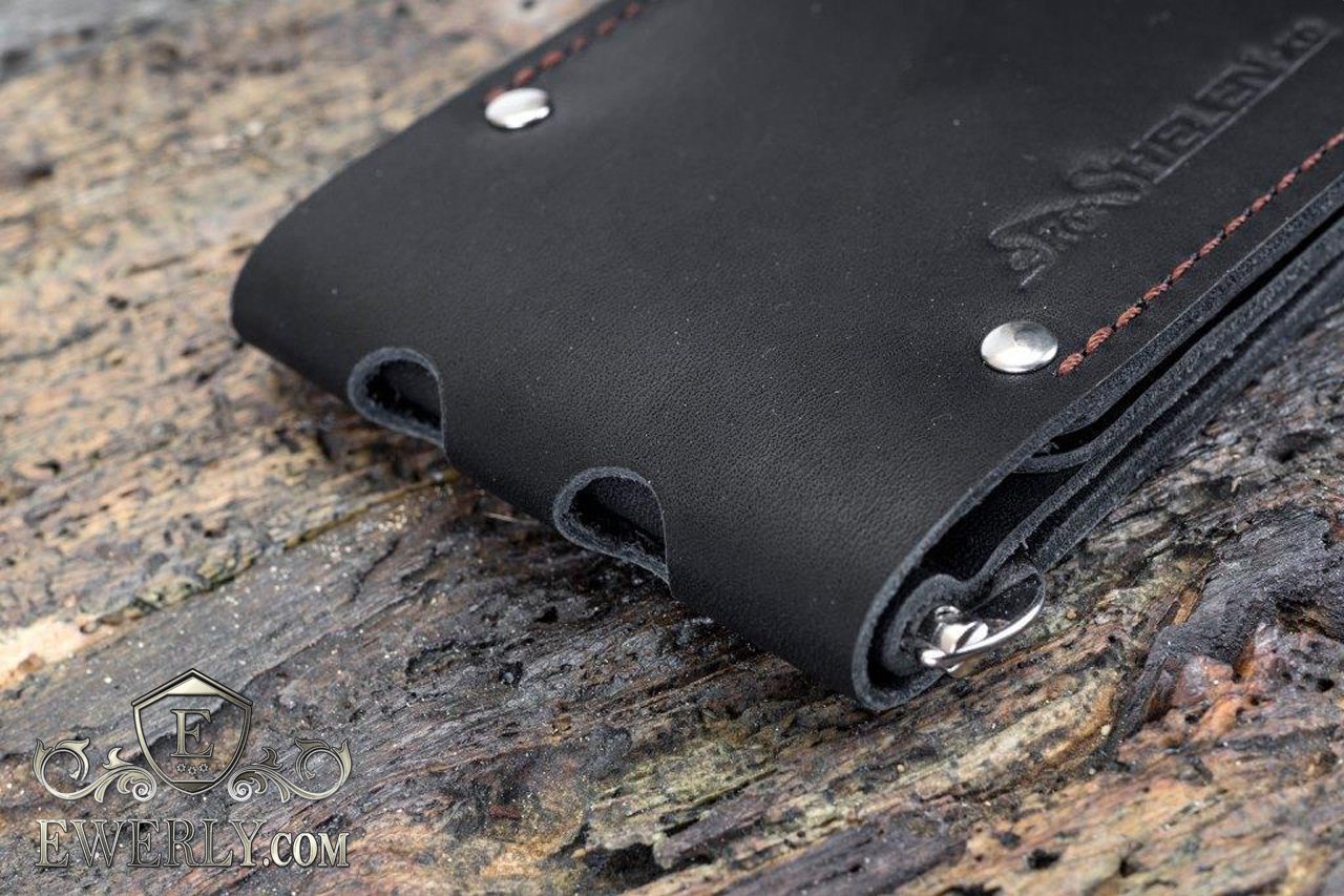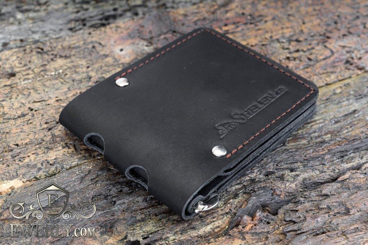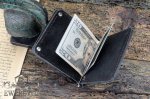 Зажим для денег кожаный чёрный с монетницей 11054AV