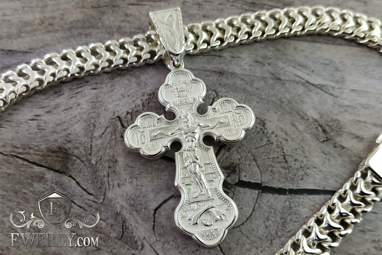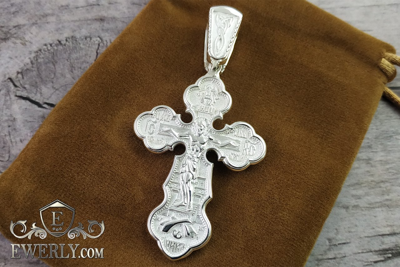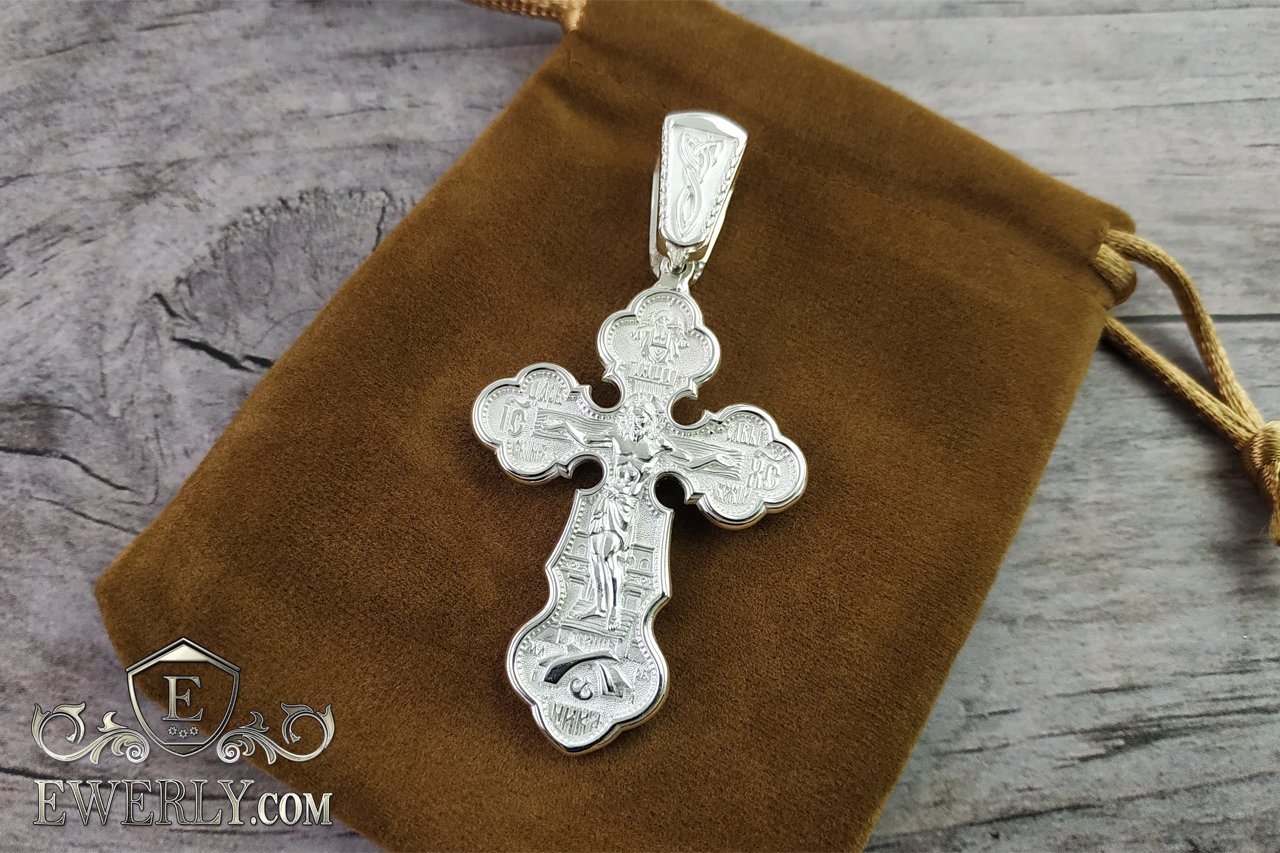 На лицевой стороне креста изображено Распятие Иисуса Христа.