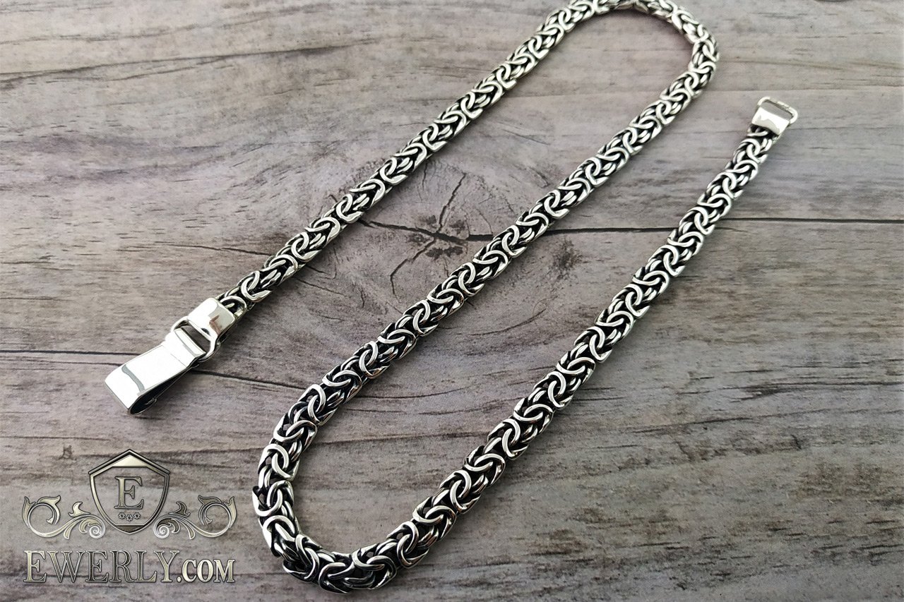Цепь изготовлена из серебра 925 пробы без покрытия, длина 65 см – при Вашем желании изготовим длину по Вашим требованиям. Мы предлагаем возможность изменить любой параметр цепи – длину, вес, покрытие или замок, чтобы она полностью соответствовала вашему стилю. Особое внимание заслуживает замок «Головы львов 2» – надежный механизм застежки и декоративный элемент, подчеркивающий мужской характер украшения.