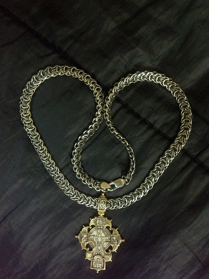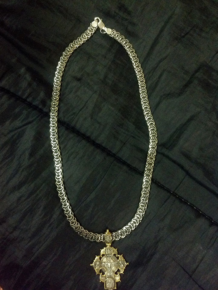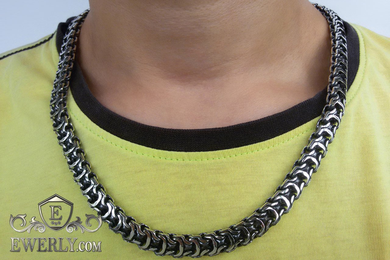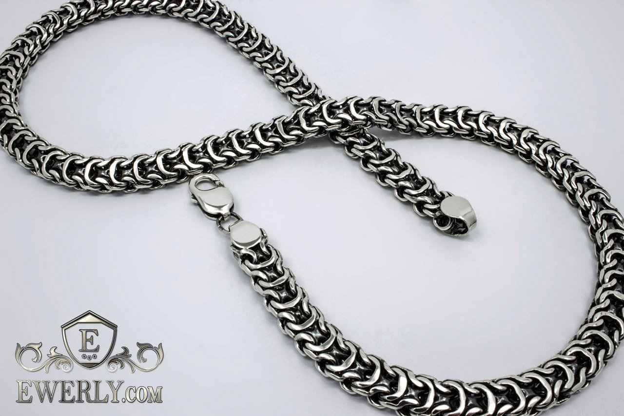 Полновесная цепочка. Очень популярное среди мужчин плетение «Рамзес», также на просторах интернета данное плетение можно увидеть под названием «Двойной обратный бисмарк». В особенности мужское внимание привлекают толстые серебряные цепочки из «Двойного обратного бисмарка» с размерами близкими к размерам на фото. И тем не менее, если такая цепочка лично для Вас смотрится на шее весьма громоздкой или наоборот маловатой, то Вы без особого труда можете откорректировать практически любой её параметр под свои вкусы, в том числе есть возможность выбрать как с чернением, так и нечернёную или же с родированием.