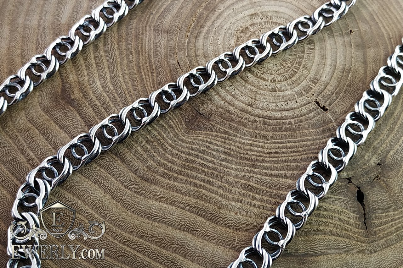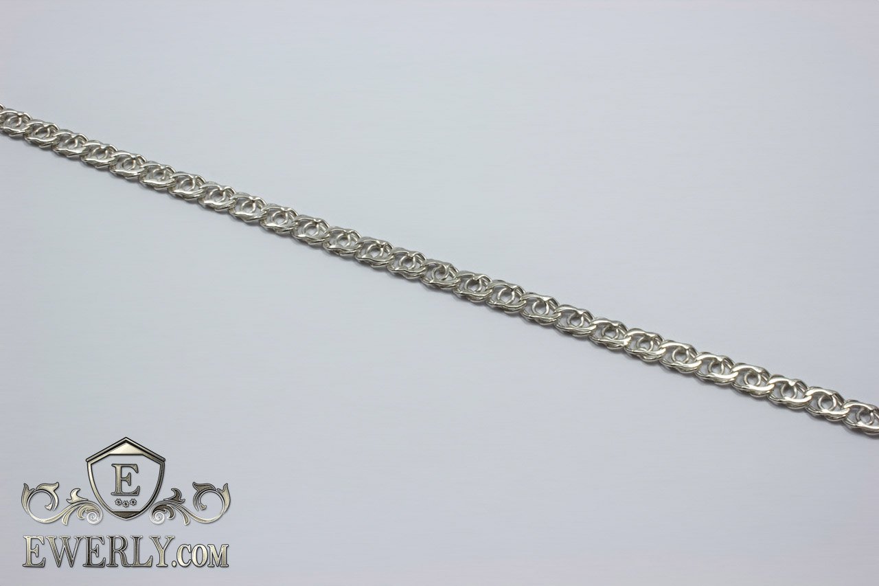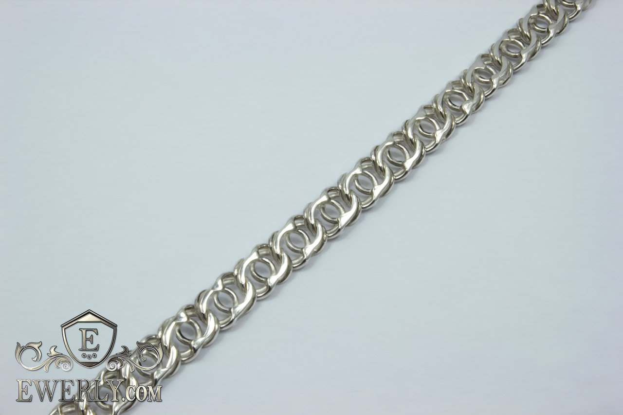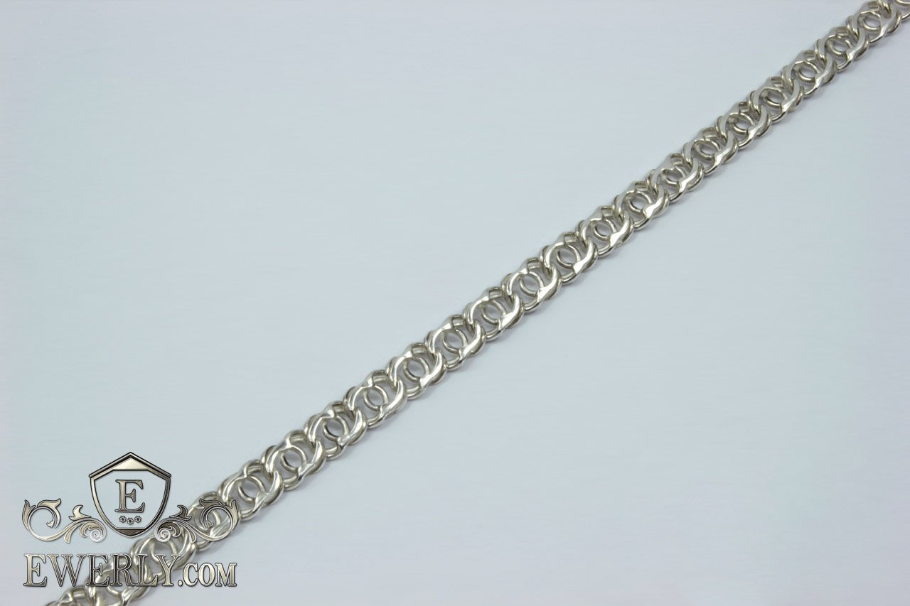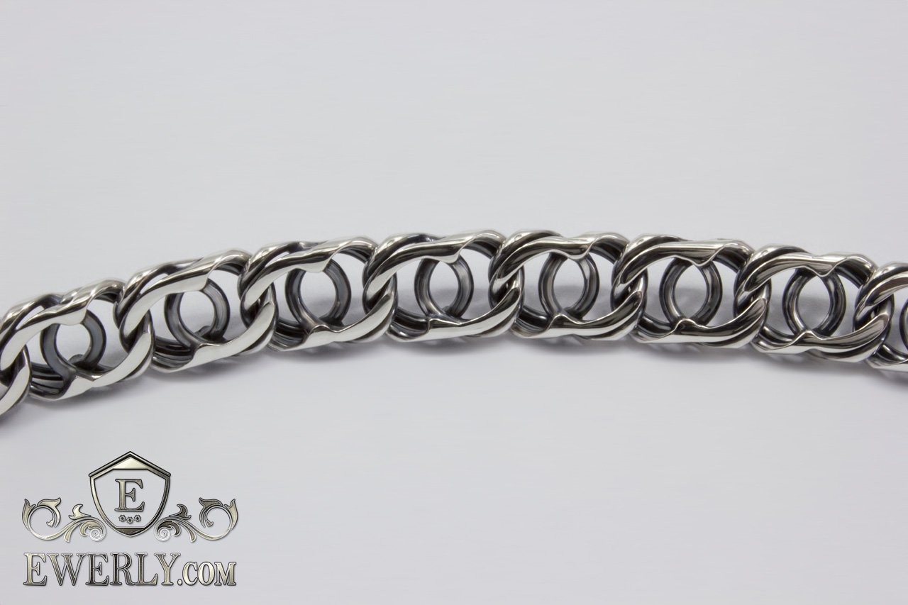 Полновесное плетение.Арабский бисмарк из серебра. На текущий момент трудно точно сказать настоящие истоки у названия данного плетения. Но без всякого сомнения именно это плетение именно под этим названием прижилось среди людей, поэтому нам ничего не остаётся кроме как тоже называть серебряные браслеты и цепочки из этого плетения «Арабским бисмарком».