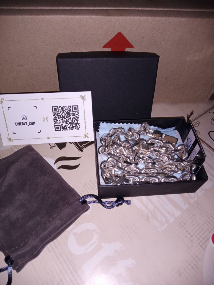 Огромное спасибо, изделие выполнено идеально! Особенно отдельное спасибо консультанту который информировал во всех интересующих вопросах. Заказывала Мужскую якорную цепь (якорь) с гранями. Масса: 173.25 г Ширина: 10.5 мм Длина: 55 см Немного переживала что будет огромная, но напрасно, она прекрасна. Спасибо)))