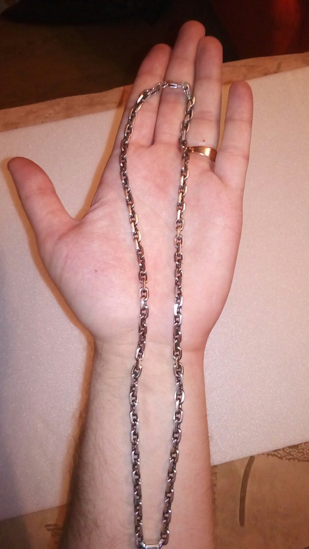 Заказала на подарок, якорная цепь с гранями 80 грамм, 60 см, 7,1 ширина. Очень красивая работа! Сделали быстро, доставили вовремя. Спасибо Вам!