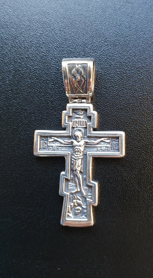 Изображено: Распятие Христово. Молитва "Да воскреснет Бог". Православный крест.Длина: 4.3 см