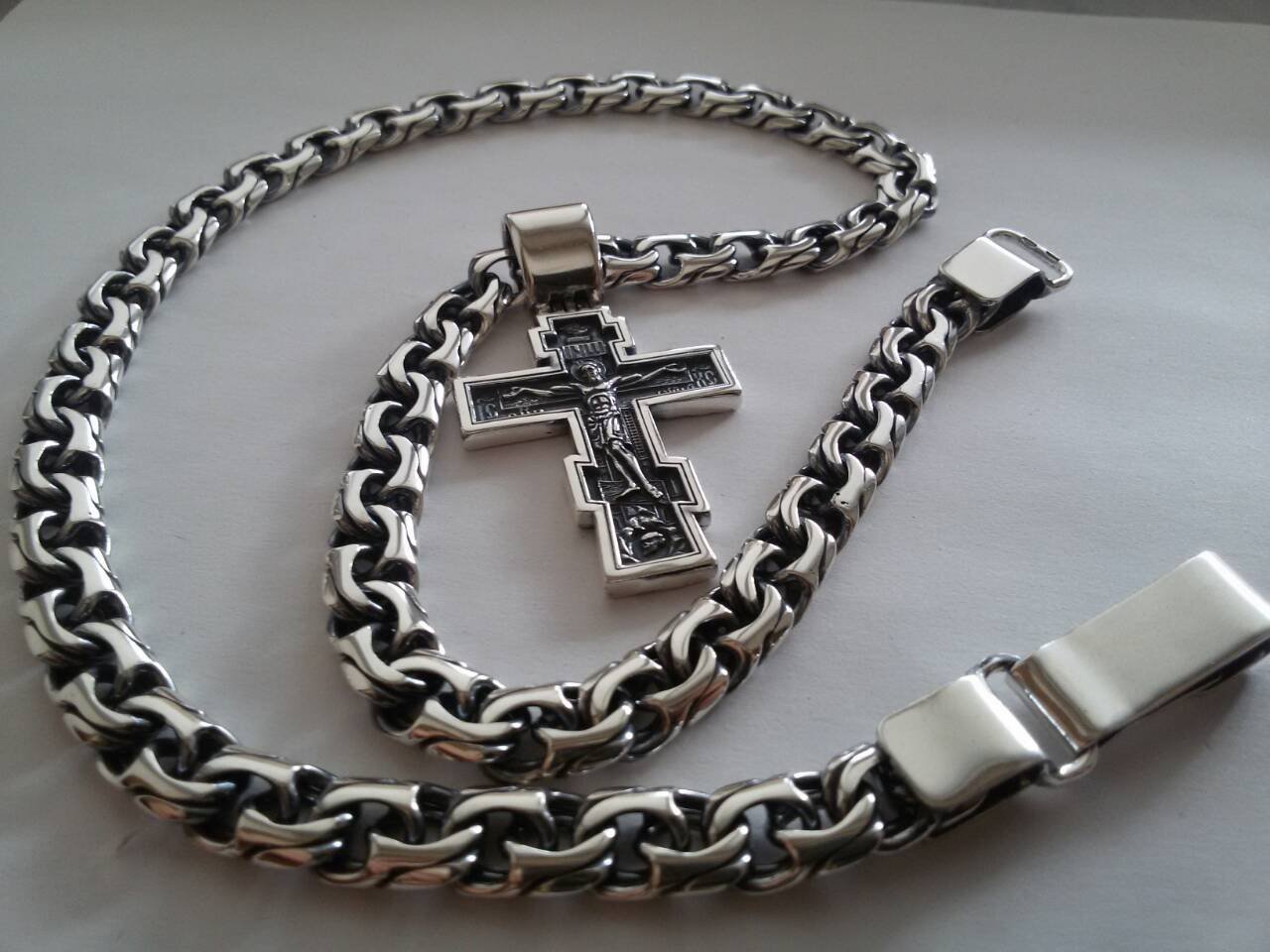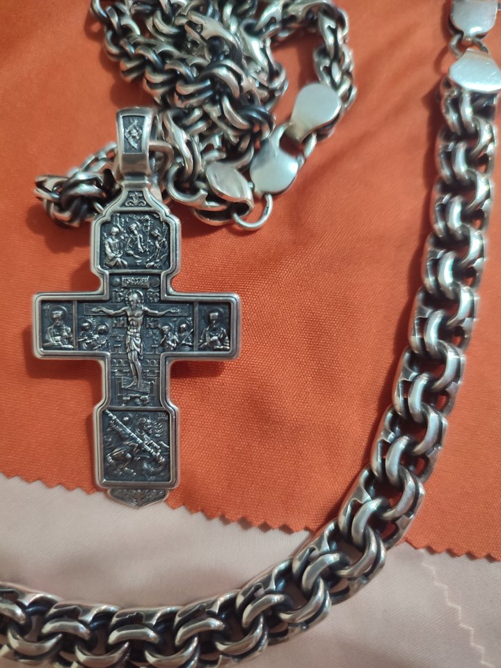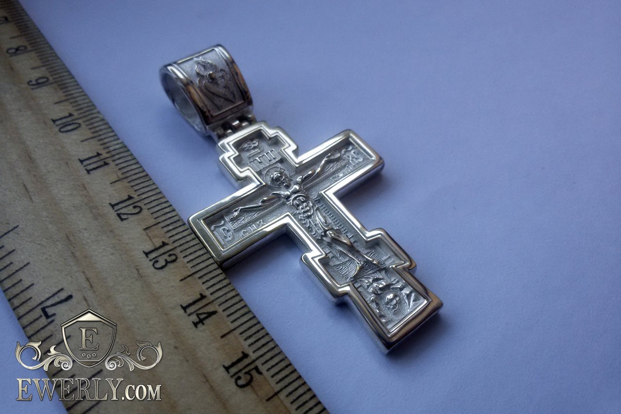 Большой православный мужской серебряный крест с чернением