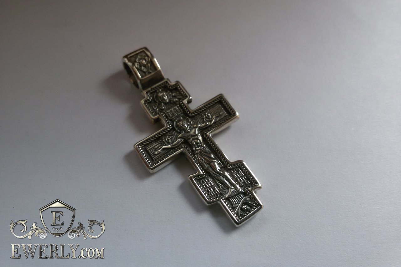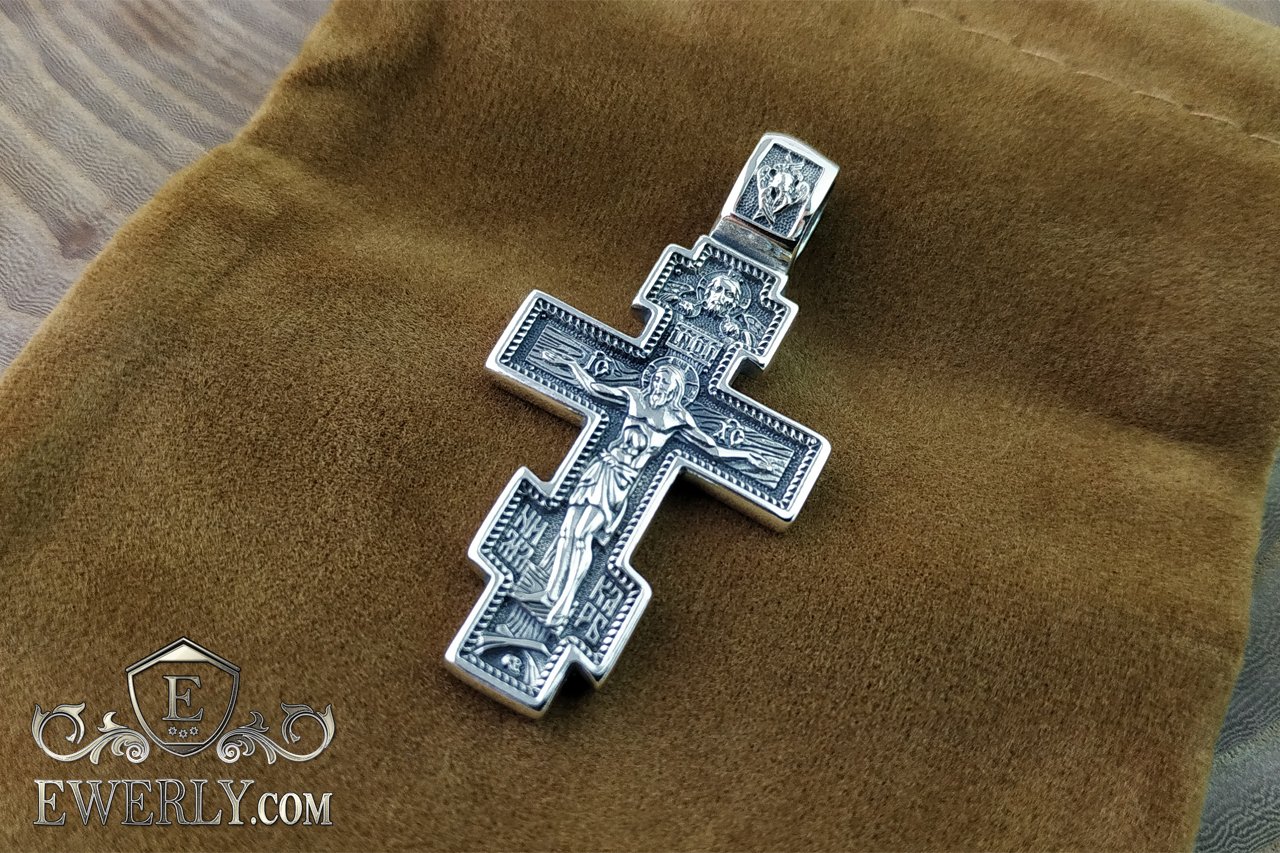 На лицевой стороне креста изображено Распятие Господа Иисуса Христа.
