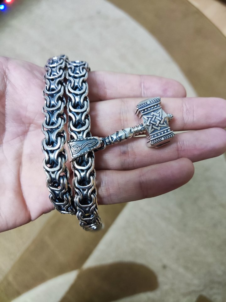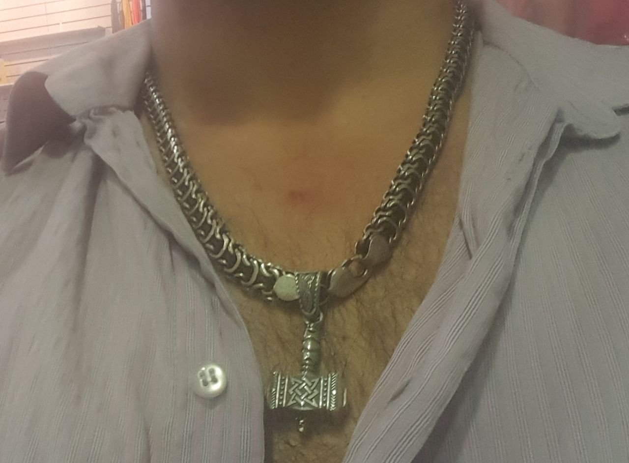 Доброго дня! Замовлення отримав ще 27 грудня, але до відгуку руки дійшли тільки зараз. Все прийшло в обумовлений термін. Замовленням задоволений, буду замовляти ще! Цеп плетіння "Рамзес" - 105,7г, 50см; кулон молот Тора - 29,5г.