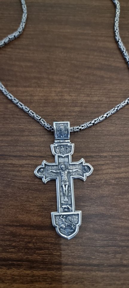 Оборотная сторона полностью гладкая с надписью «Спаси и Сохрани», ставшая традиционным элементом православных украшений. Эта фраза усиливает духовную составляющую изделия и напоминает о вере и защите, которую дарует Бог.